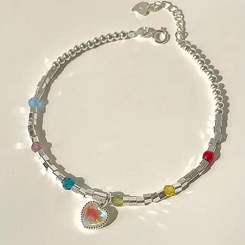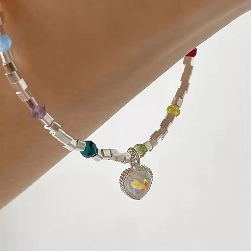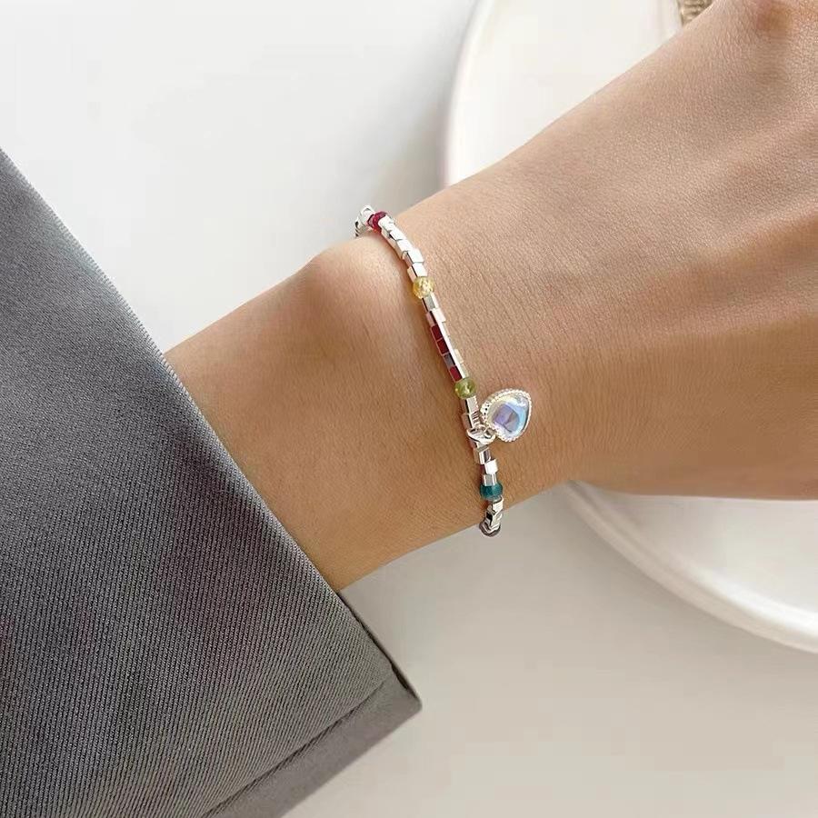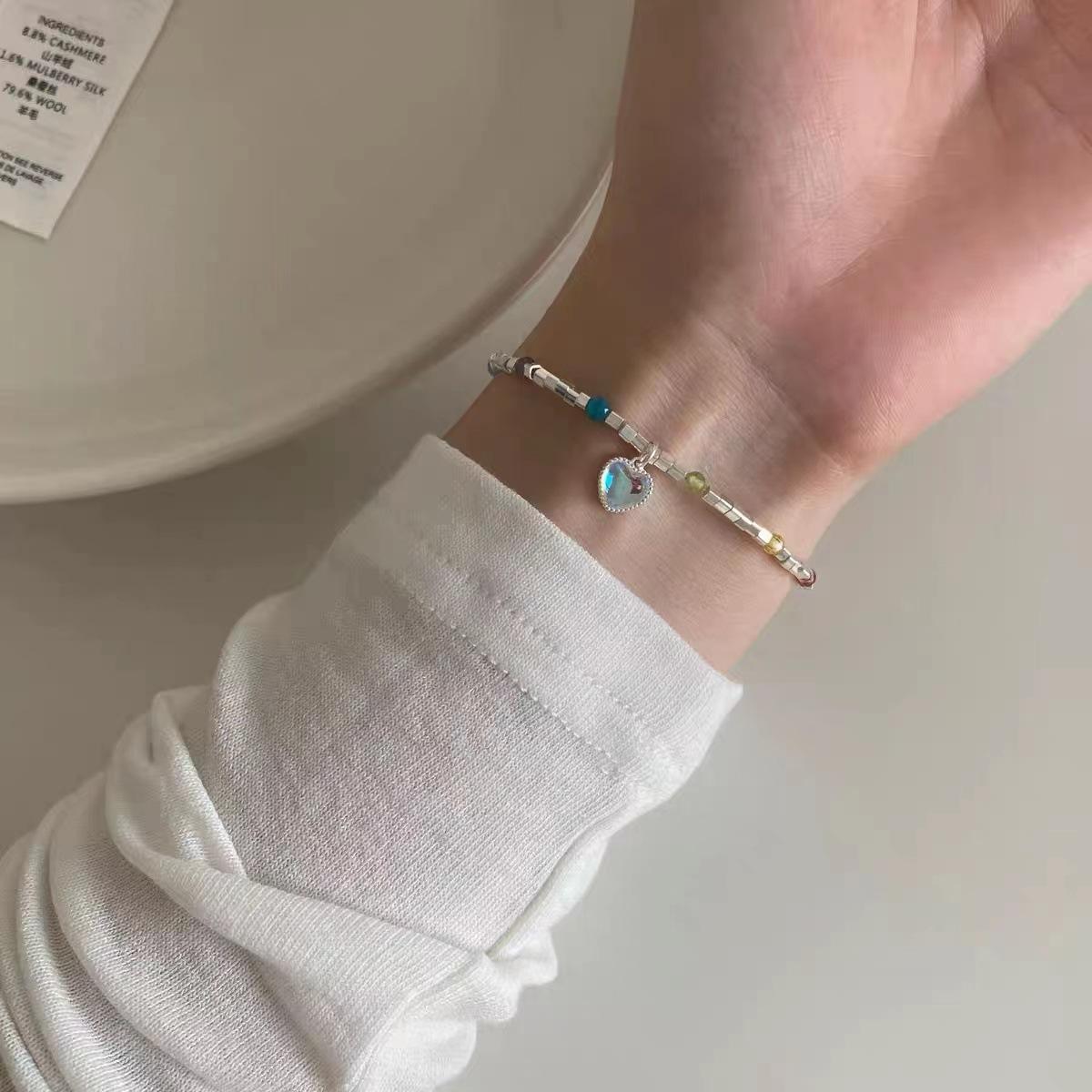 Color Cristal Amor Piedra Lunar Pulsera de Cuentas Femenina Regalo para Novia Simple Personalidad Versátil Diseño Nicho Pulsera