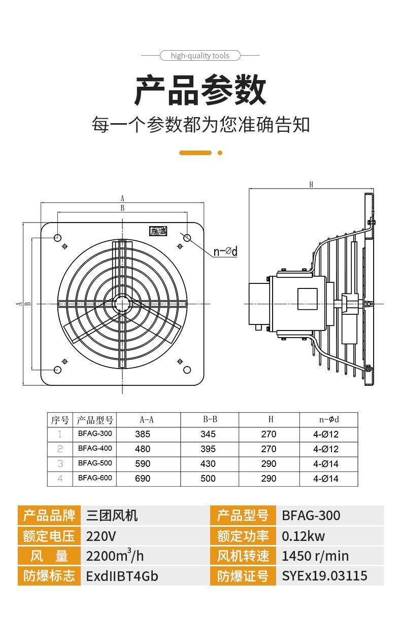 Ventilador a prueba de explosiones, extractor de aire a prueba de explosiones BFAG-300, soporte industrial, 380 V, 220 V, potente ventilador cuadrado