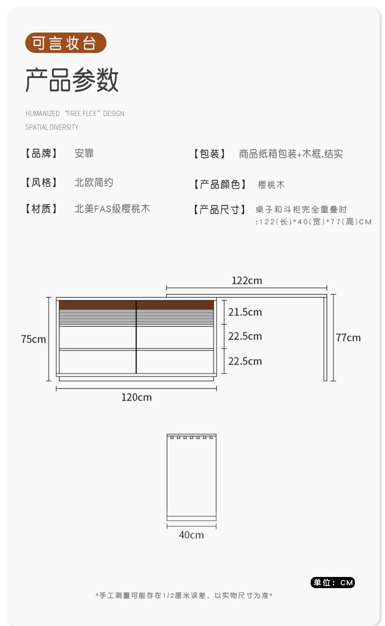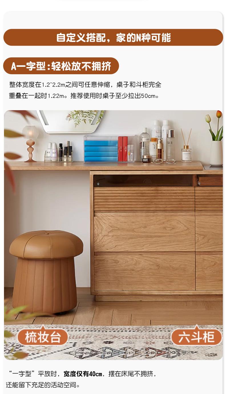 Shun Yi Madera de Cerezo Madera Maciza Tocador Cubo Gabinete Integrado Removible Estilo Crema Dormitorio Extremo de Cama Mesa de Maquillaje Gabinete de Almacenamiento