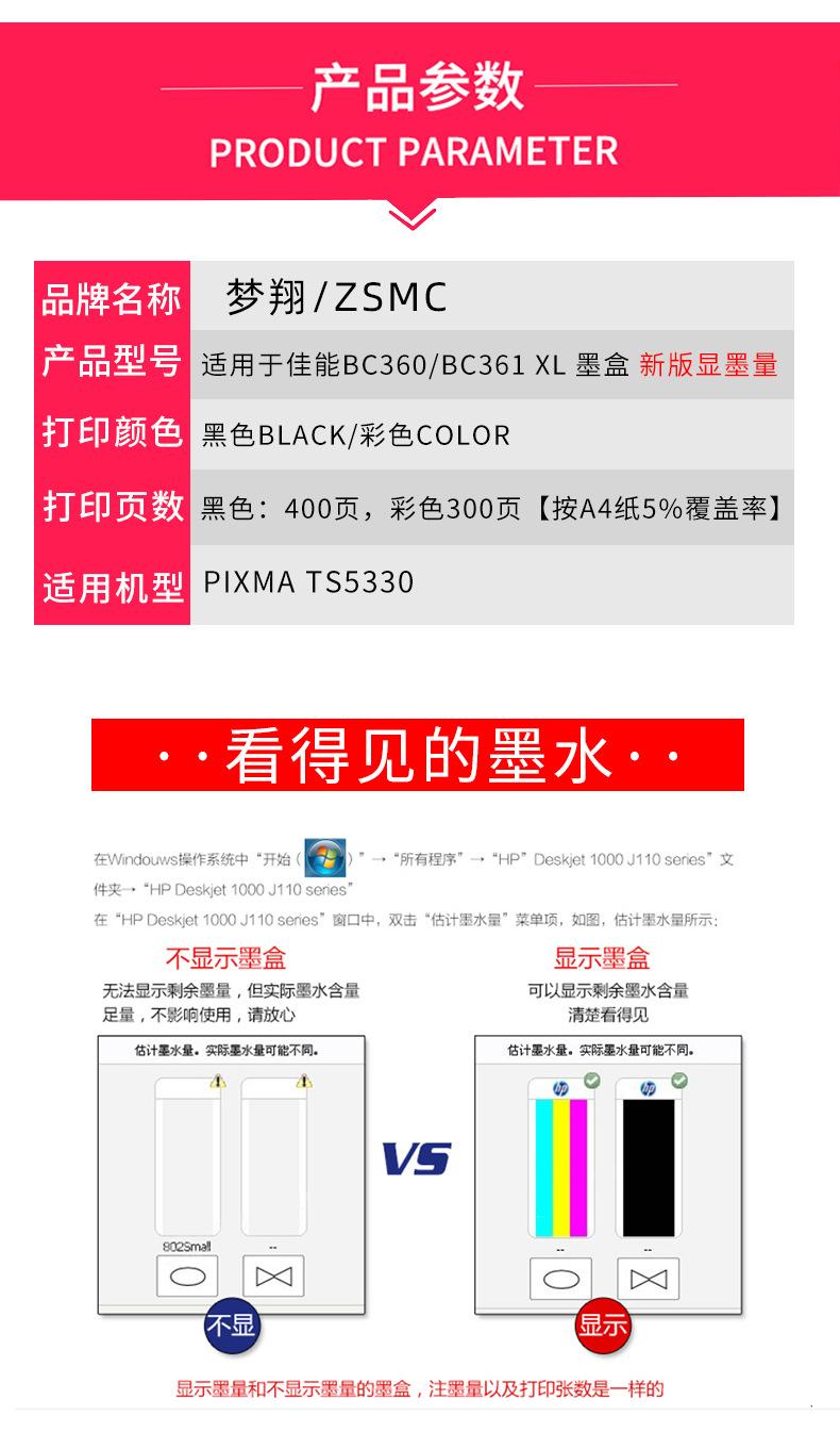 Compra Compatible con cartuchos de tinta intercambiables Canon CANON BC-360 BC-361 TS5330 TS5430 al por mayor en Joom.pro