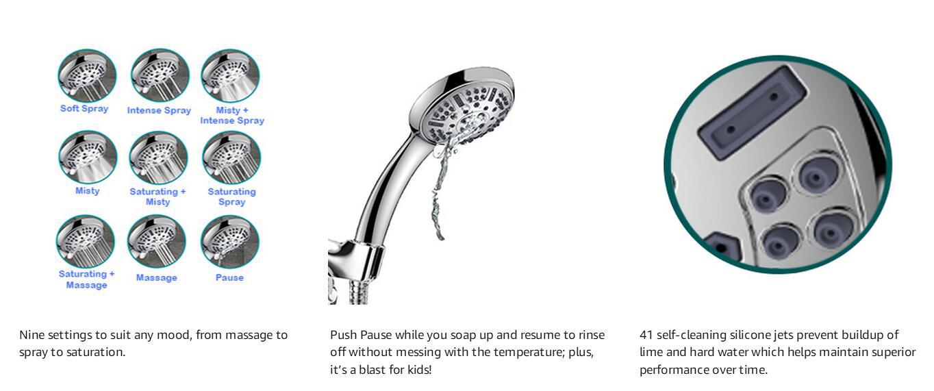 Cabezal de ducha de 9 funciones (con función de goteo de agua)