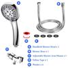Ducha de 9 funciones+Juego de mangueras de acero inoxidable de 1,5 m (universal)