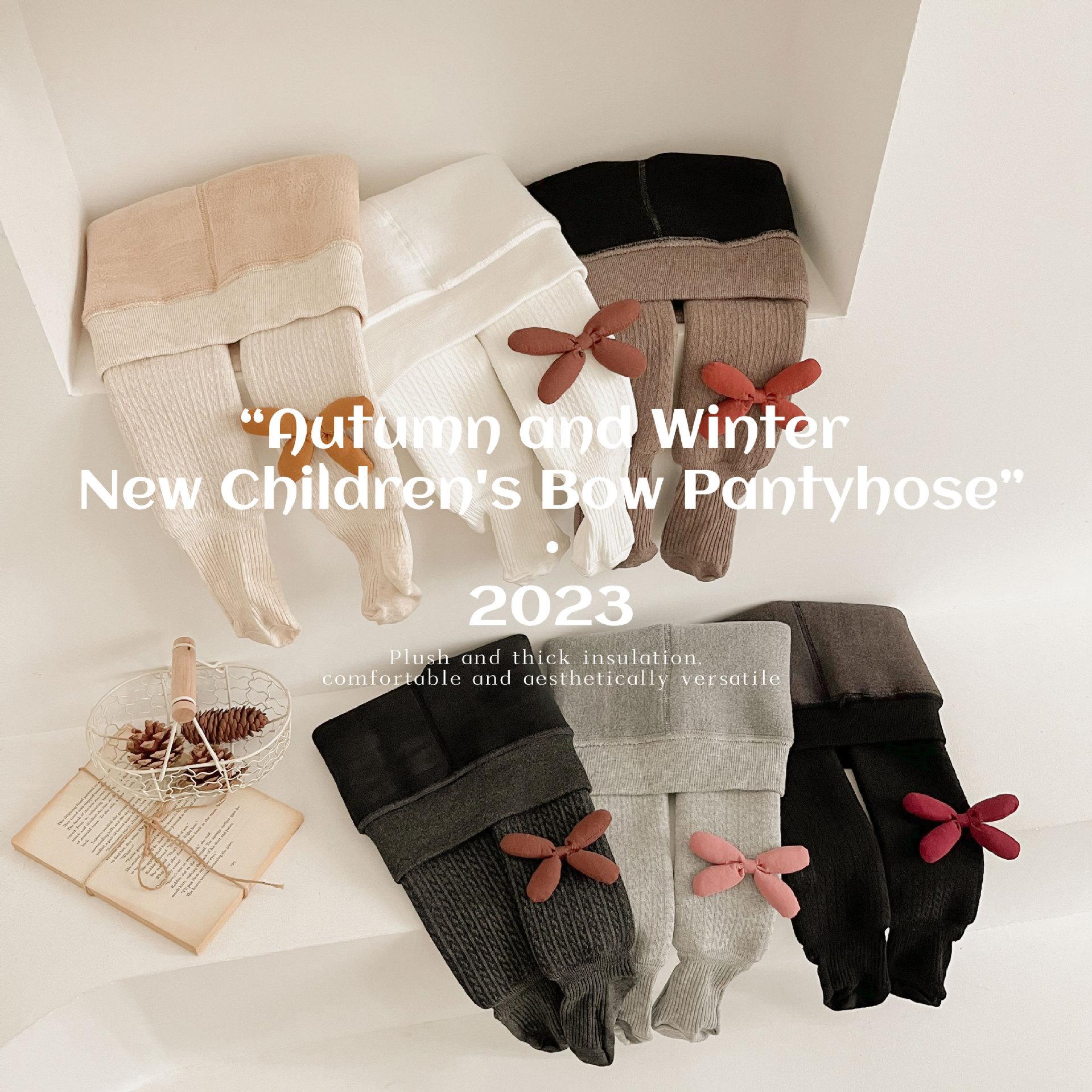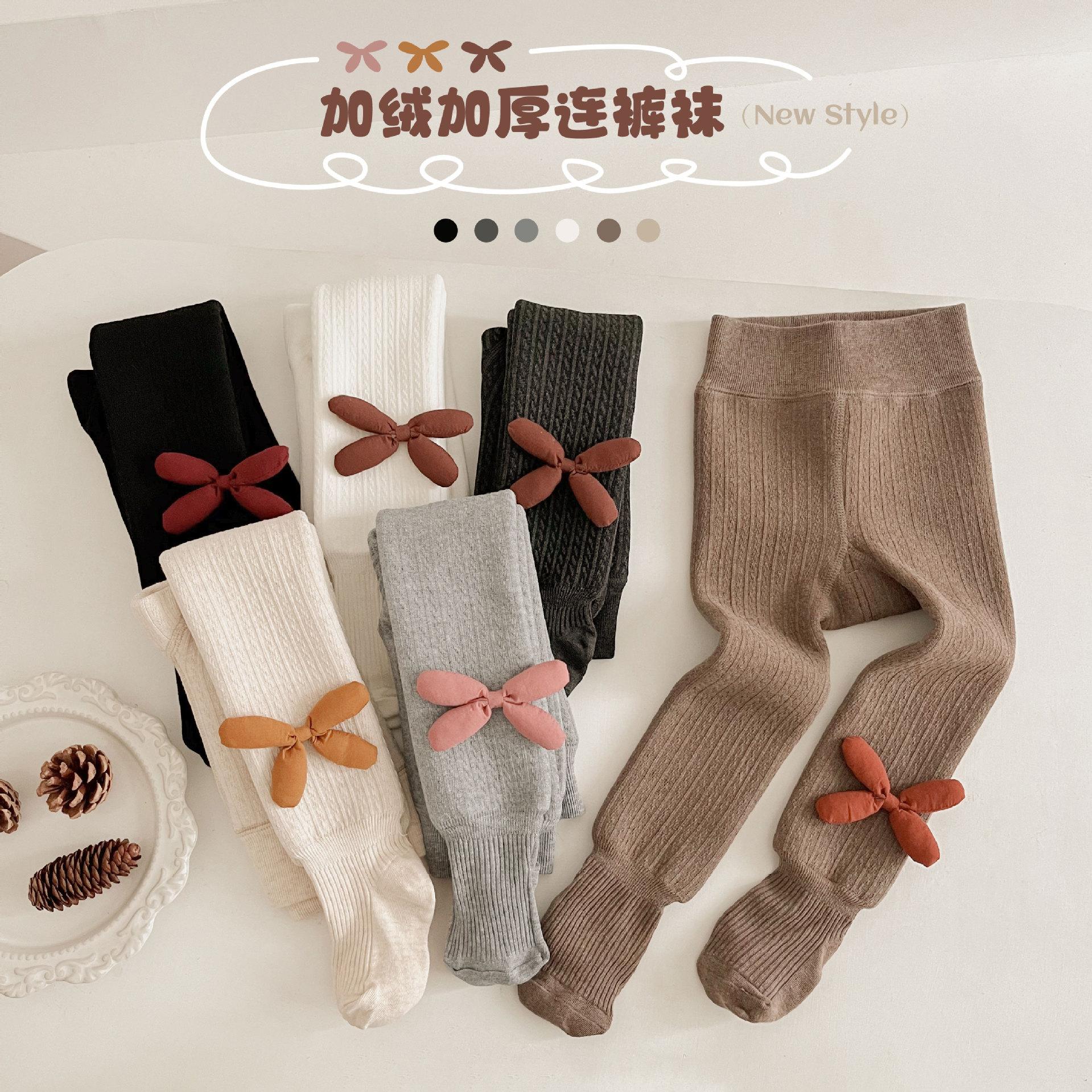 Leggings para niñas, otoño e invierno, con forro polar, con lazo grueso, pantimedias para niños, resistentes al frío, pantimedias cálidas para bebés