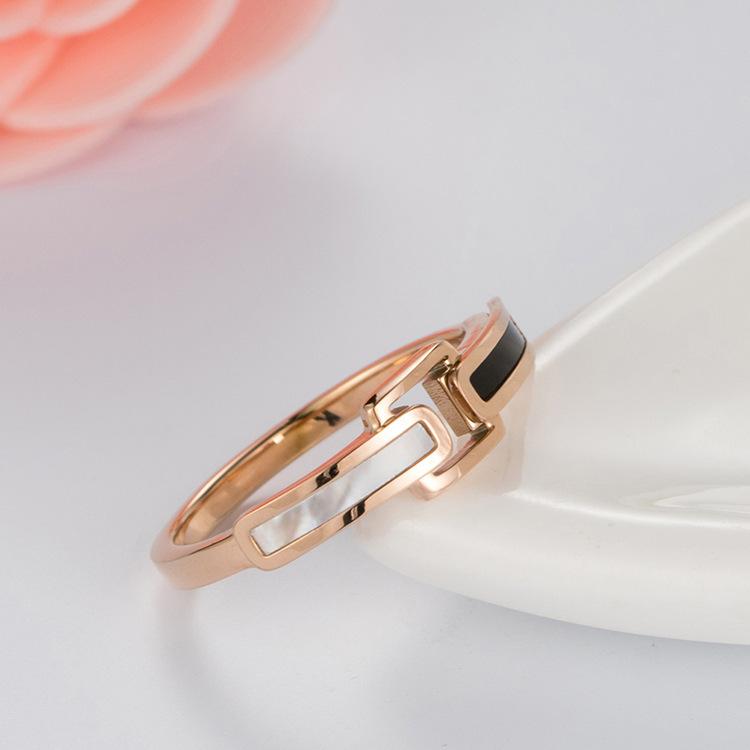 Suministro Transfronterizo de Anillos de Acero Inoxidable, Anillos de Acero de Titanio, Estilos de Hebilla de Cinturón de Oro Rosa, Anillos de Concha, Mujeres a la Moda
