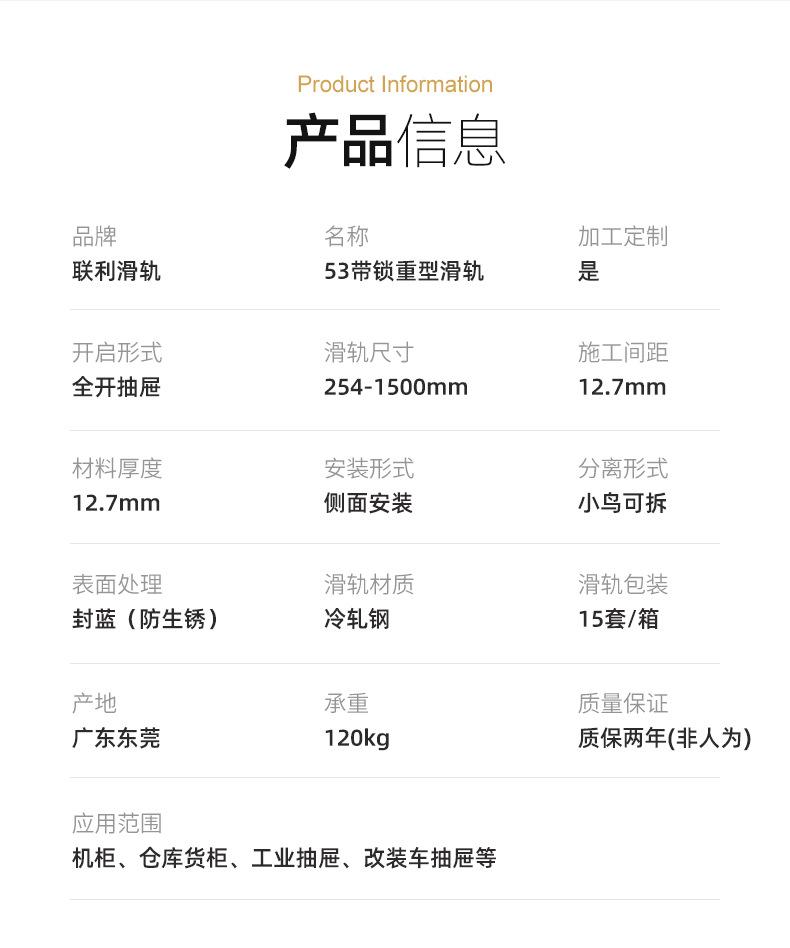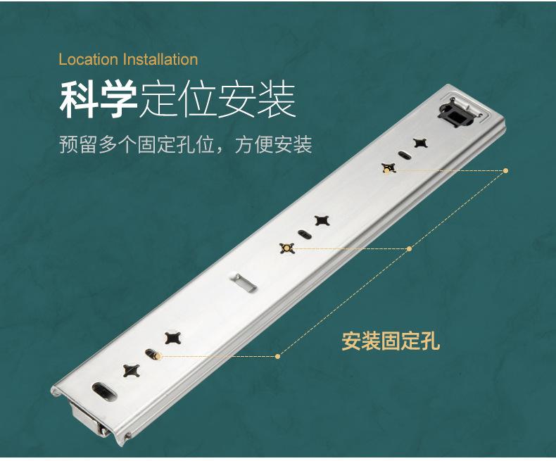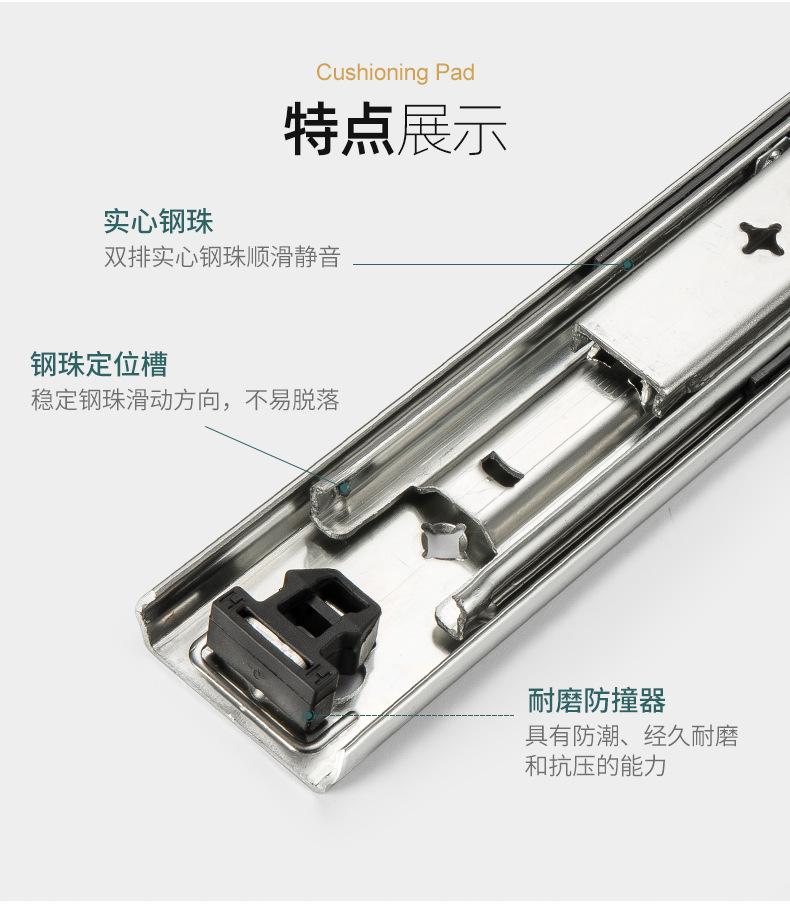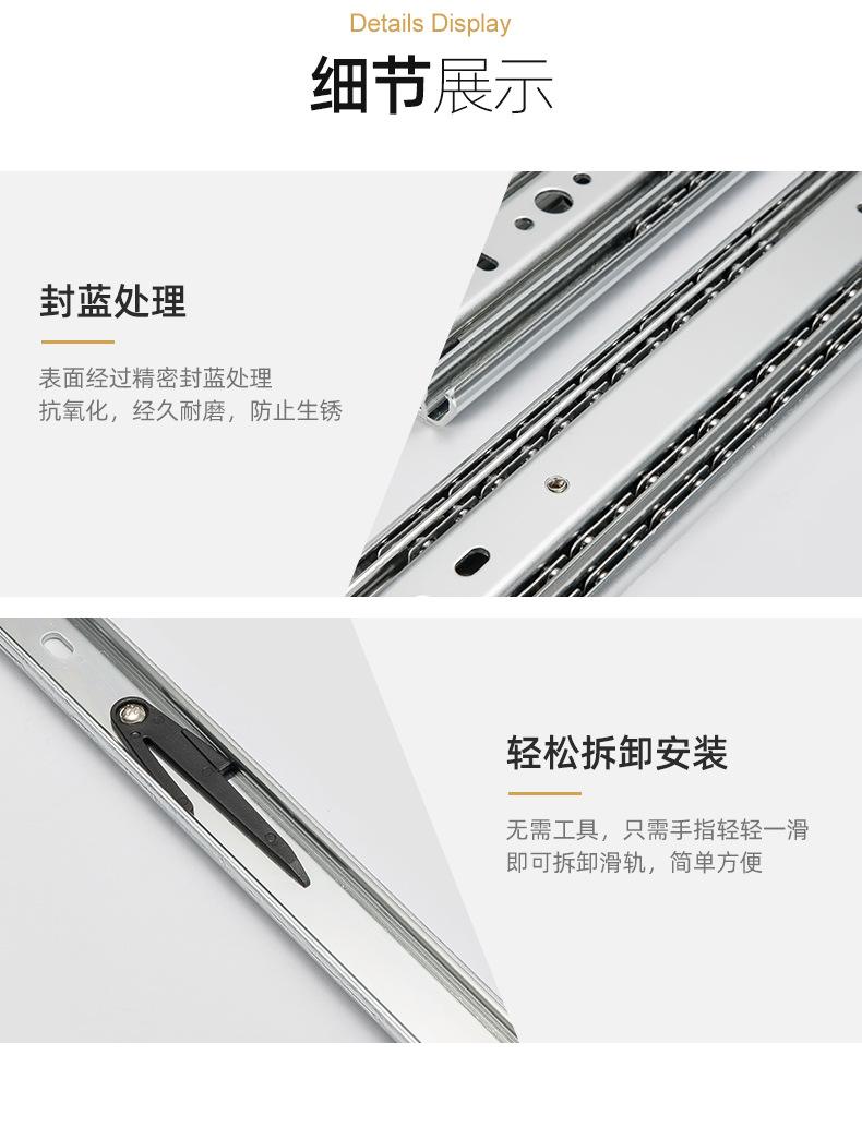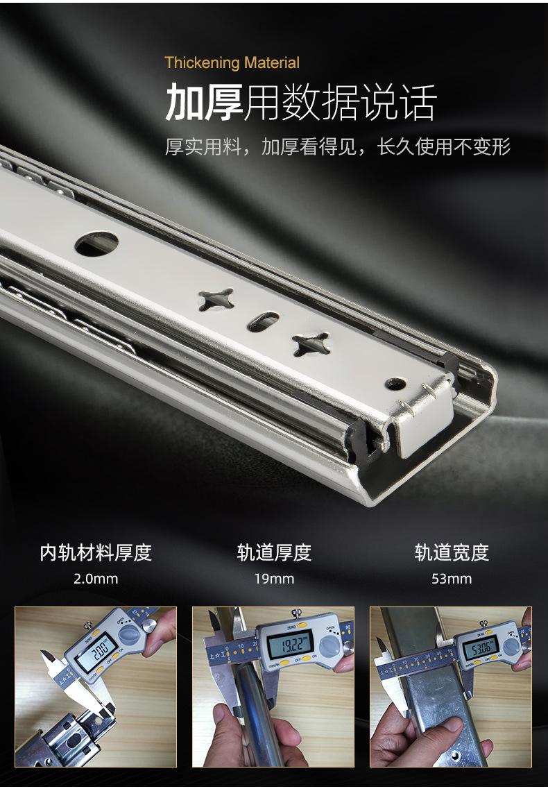 Riel deslizante de bolas de acero de tres secciones, engrosado, de alta resistencia, con cerradura, de 53 de ancho, para gabinete, cajón industrial RV, riel deslizante con soporte de carga