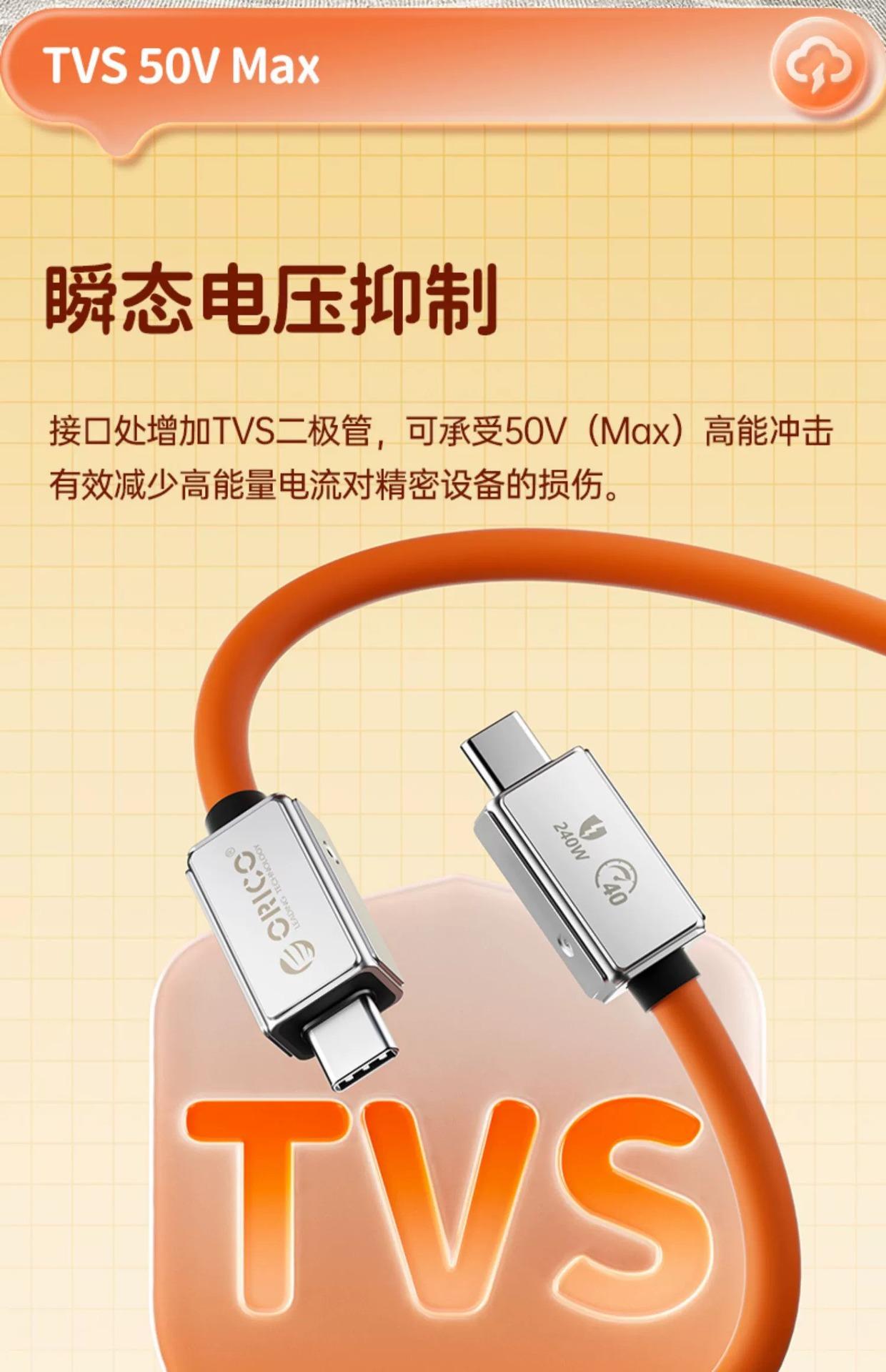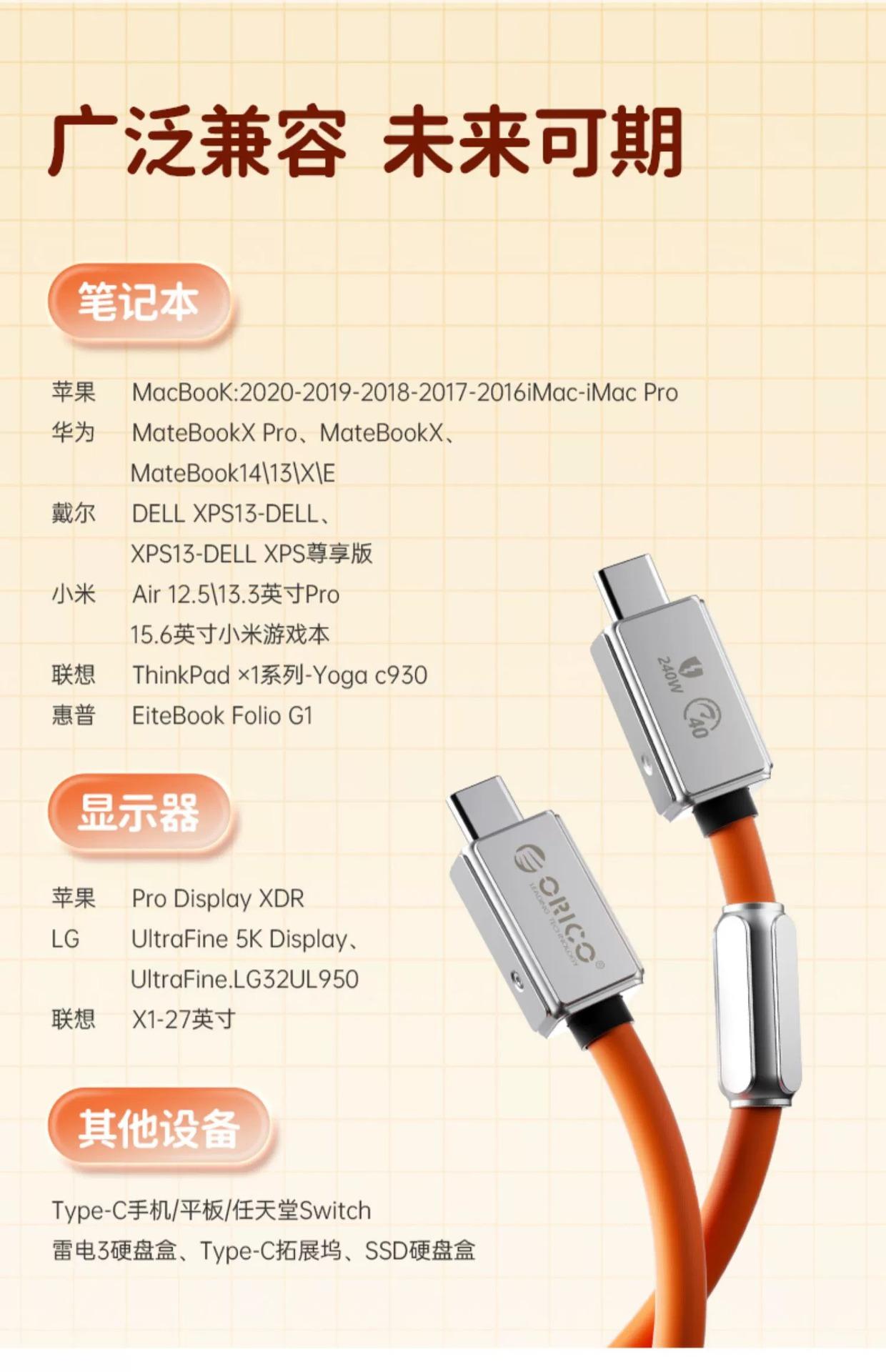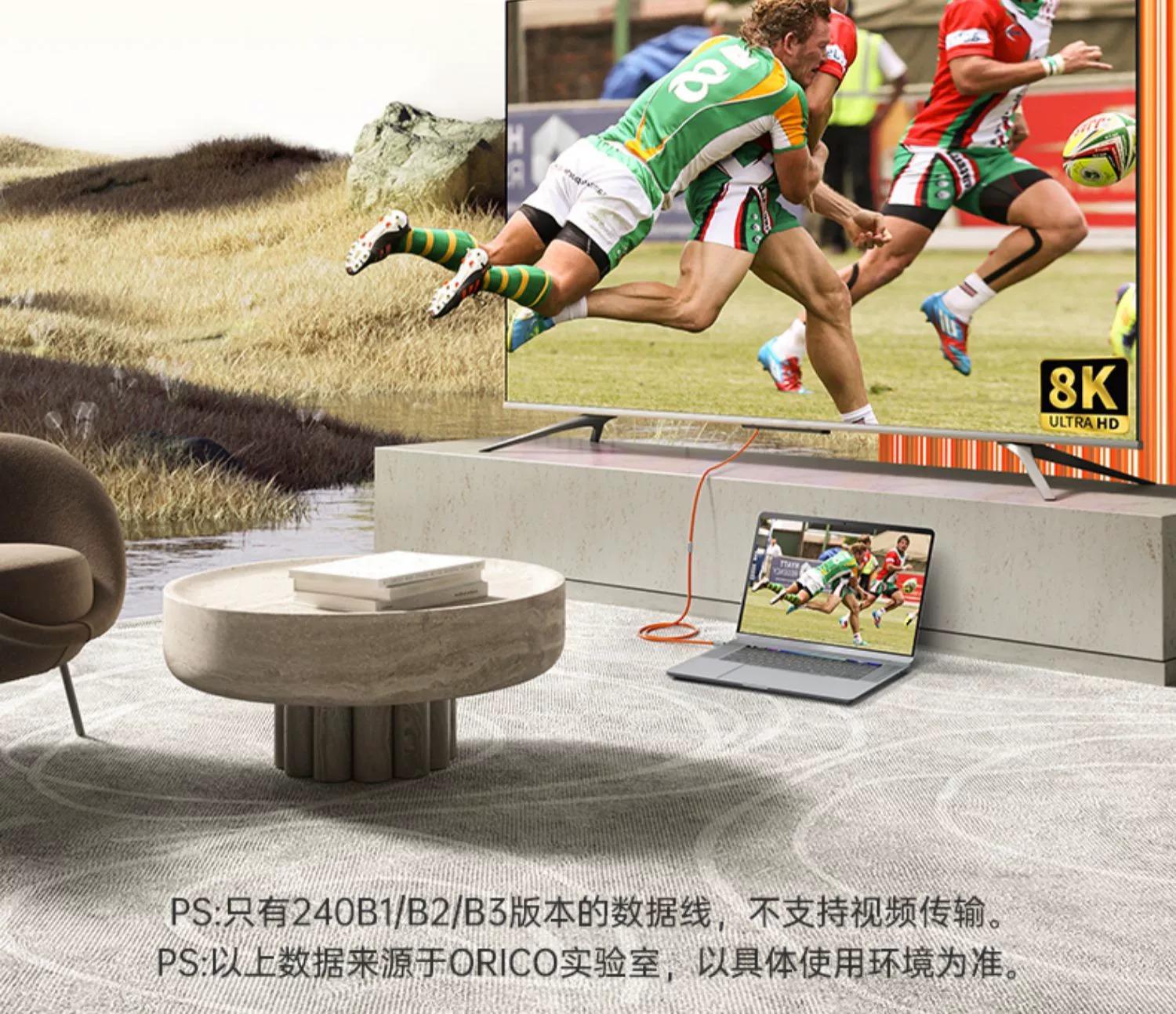 Orico Orico Cable de Datos de 2m Tipo-C Carga Súper Rápida Extendido Doble Extremo con Funciones Completas Proyección de Pantalla de Alta Definición 8K