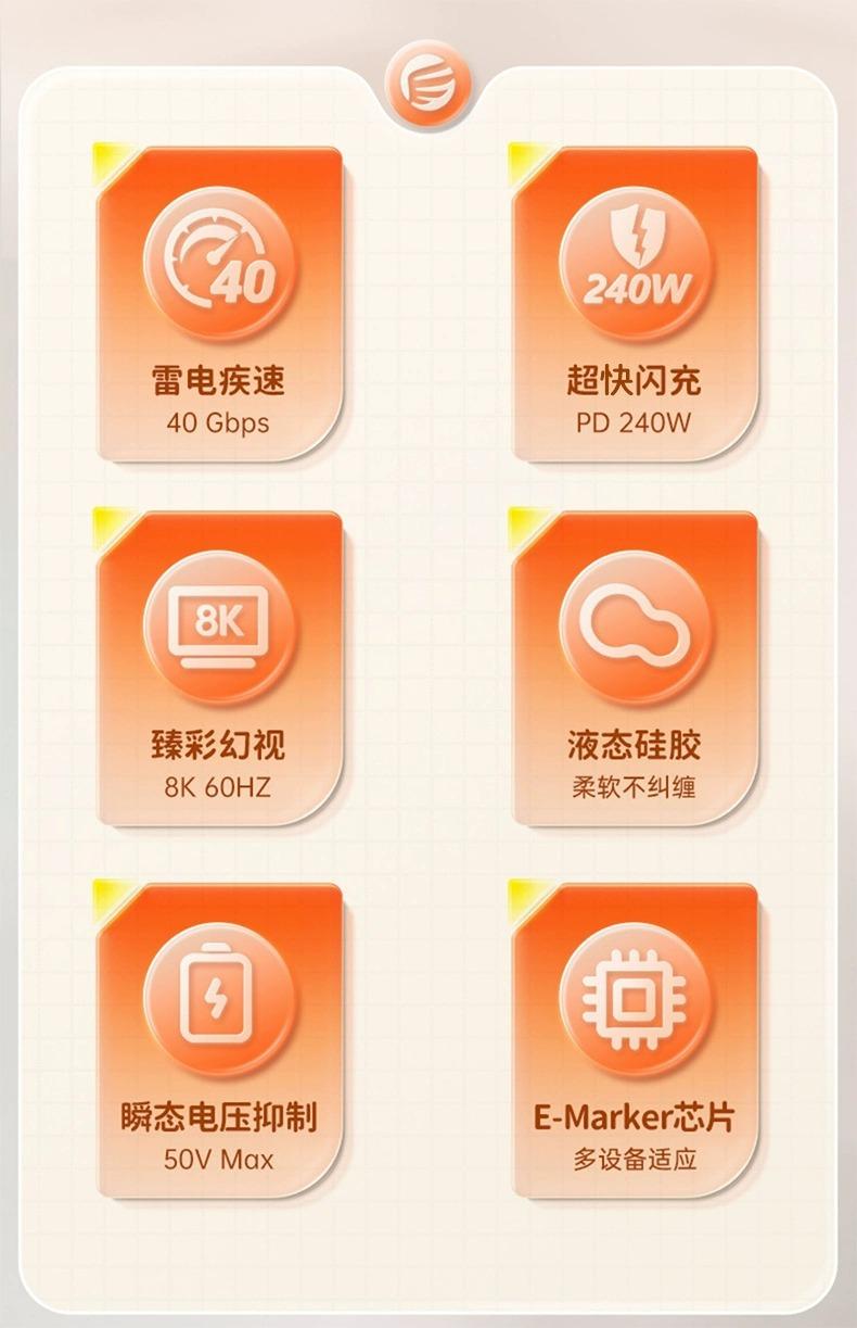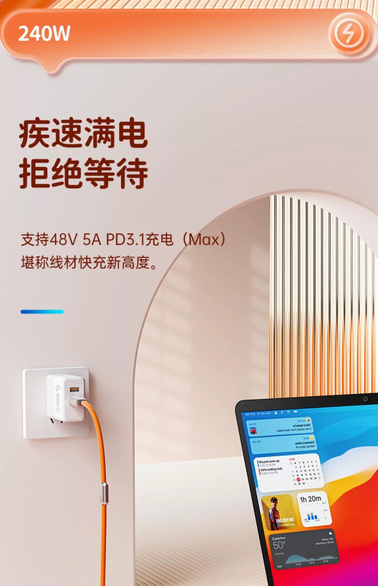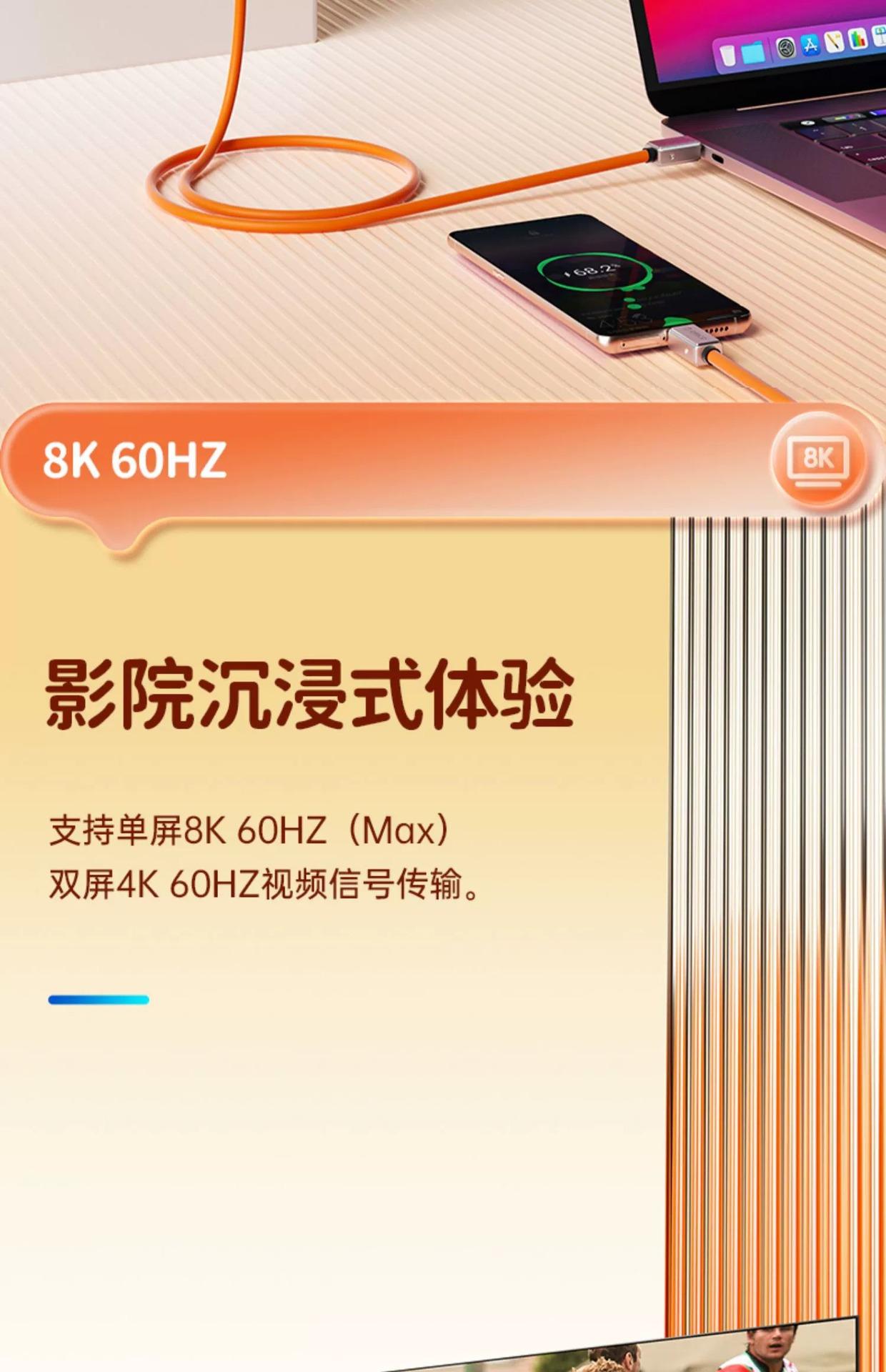 Orico Orico Cable de Datos de 2m Tipo-C Carga Súper Rápida Extendido Doble Extremo con Funciones Completas Proyección de Pantalla de Alta Definición 8K
