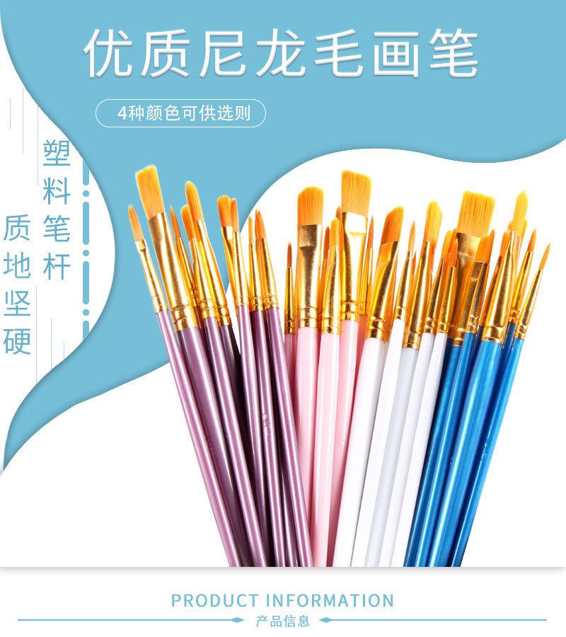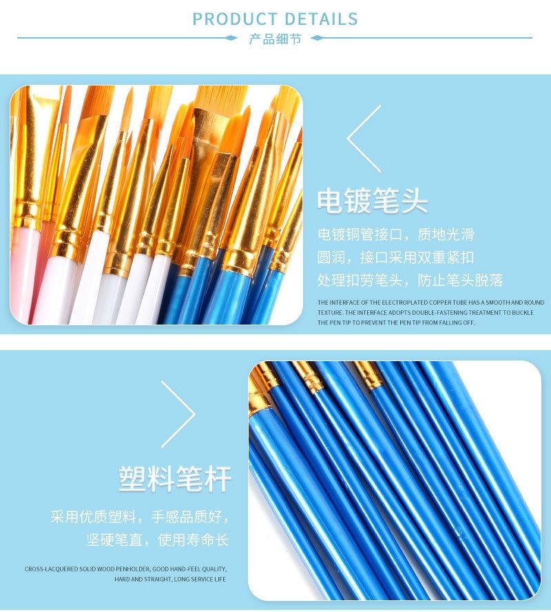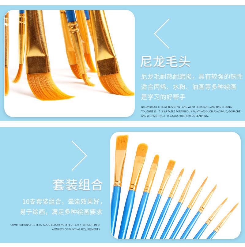 Pincel de plástico 10 para óleo transfronterizo, lana de nailon, clase de entrenamiento, pincel para pintar para niños, cabeza plana, juego de pinceles para óleo, fábrica