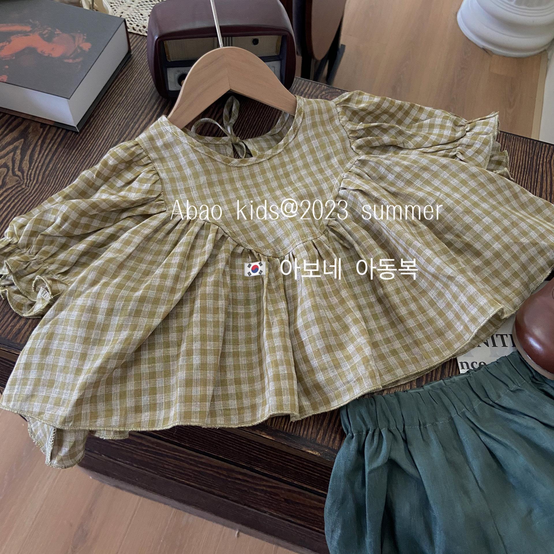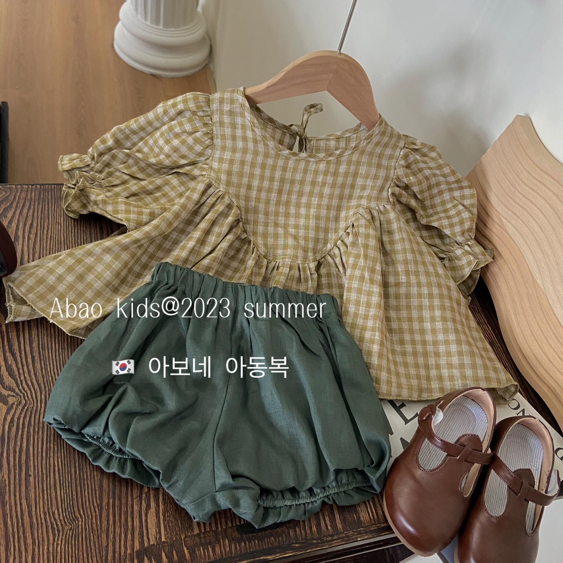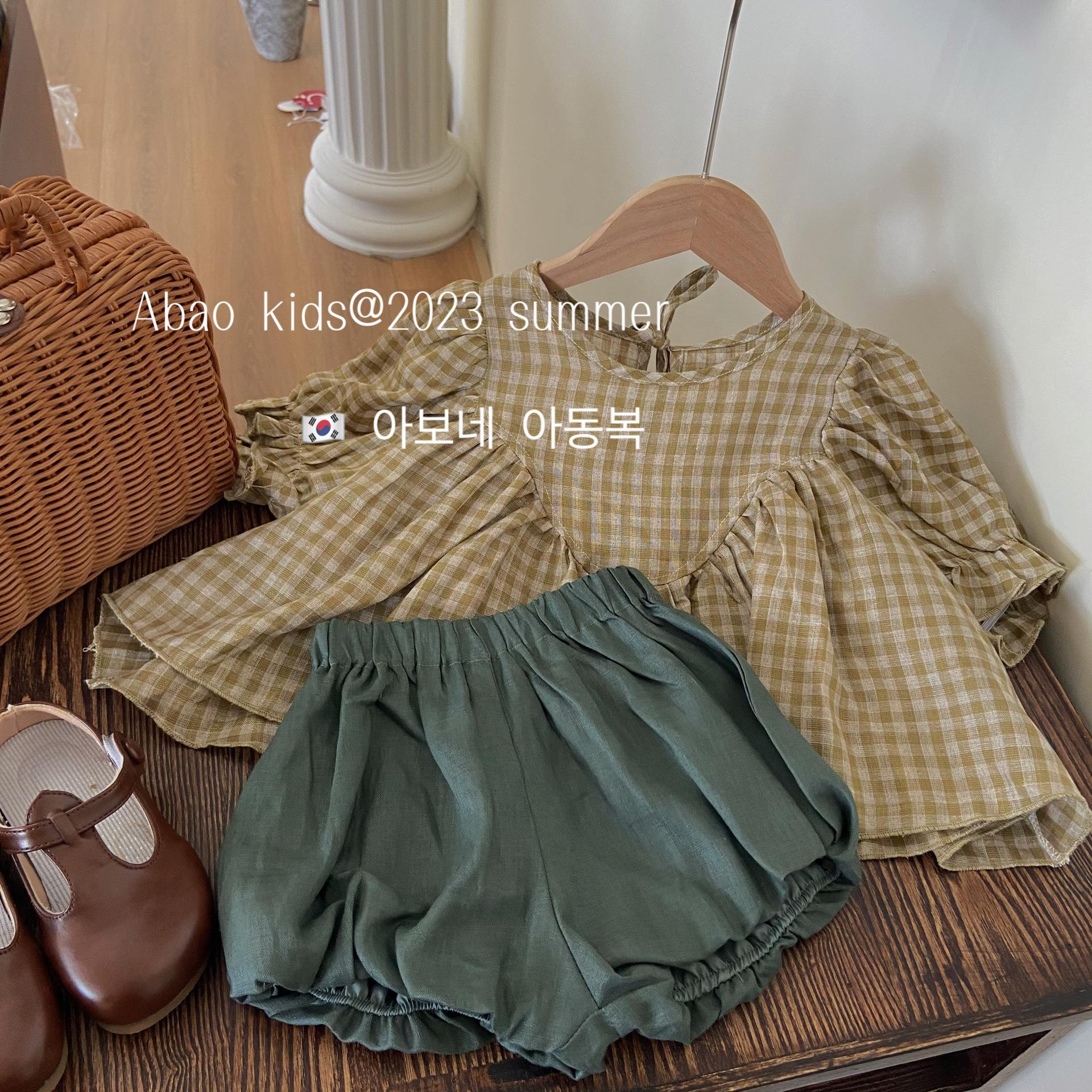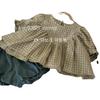 Gran Venta No Reembolsable y No Intercambiable [Pedido por Racionalidad] Top a Cuadros de Lino Puro + Shorts Bud para Niñas, Versátil y Delicado con la Piel