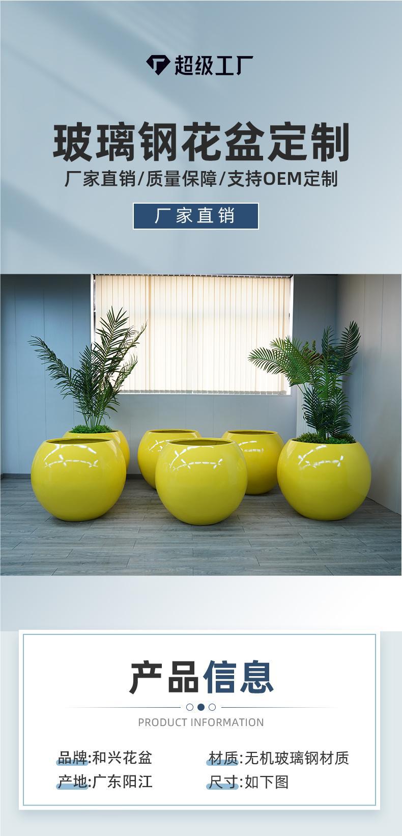 Fabricante de macetas de fibra de vidrio para exteriores, personalizadas, redondas y grandes, para interiores, de cemento, para plantas verdes, adornos de suelo.