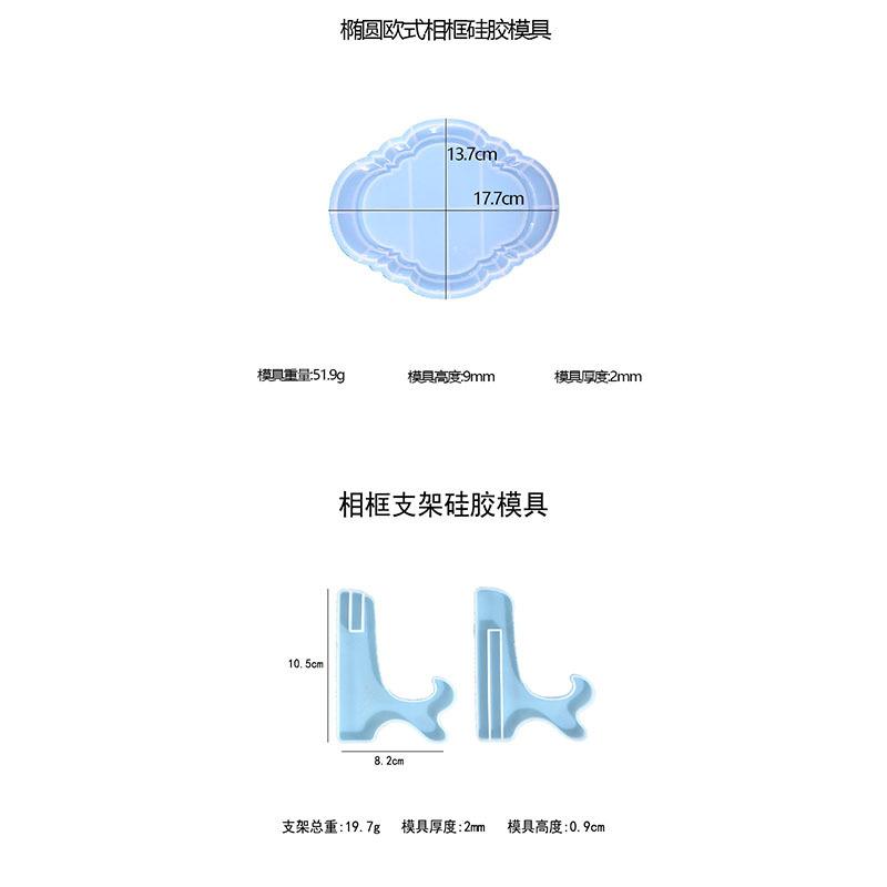 Oval European-style photo frame silicone mold + photo frame bracket silicone mold