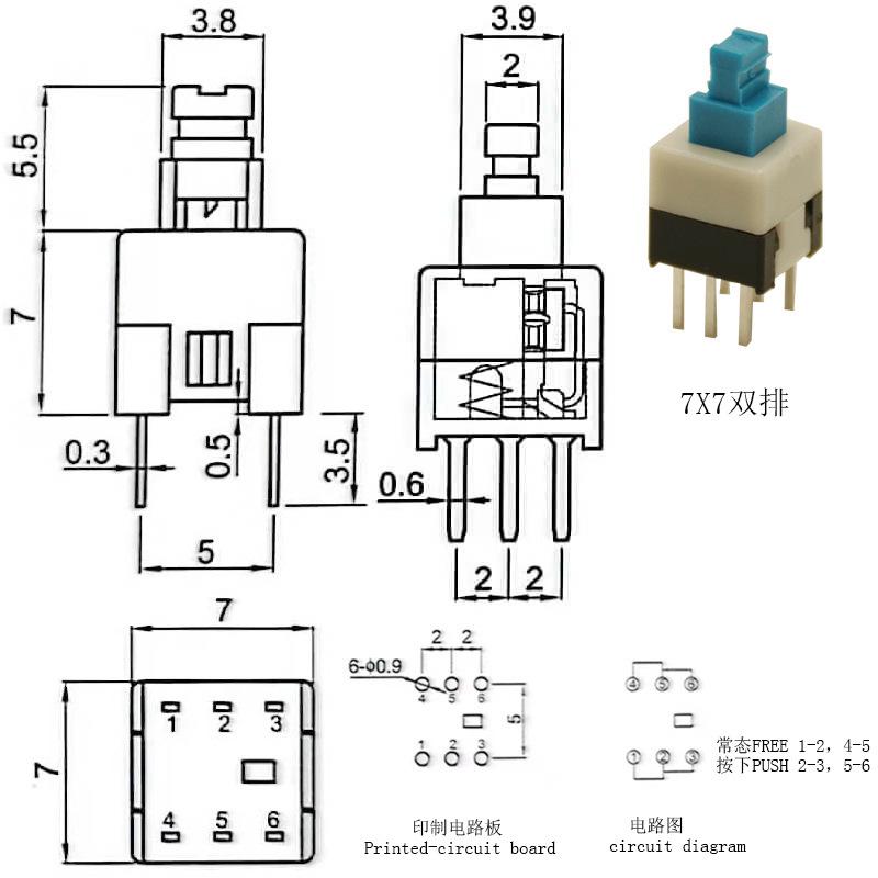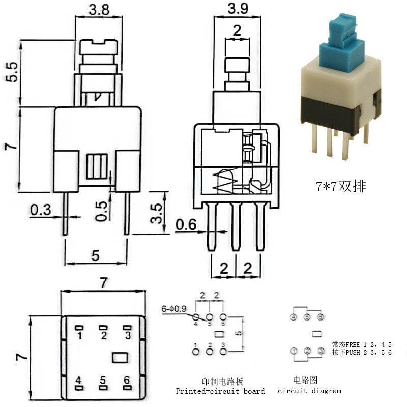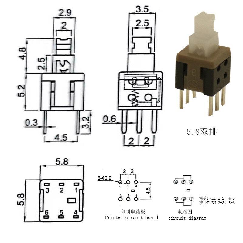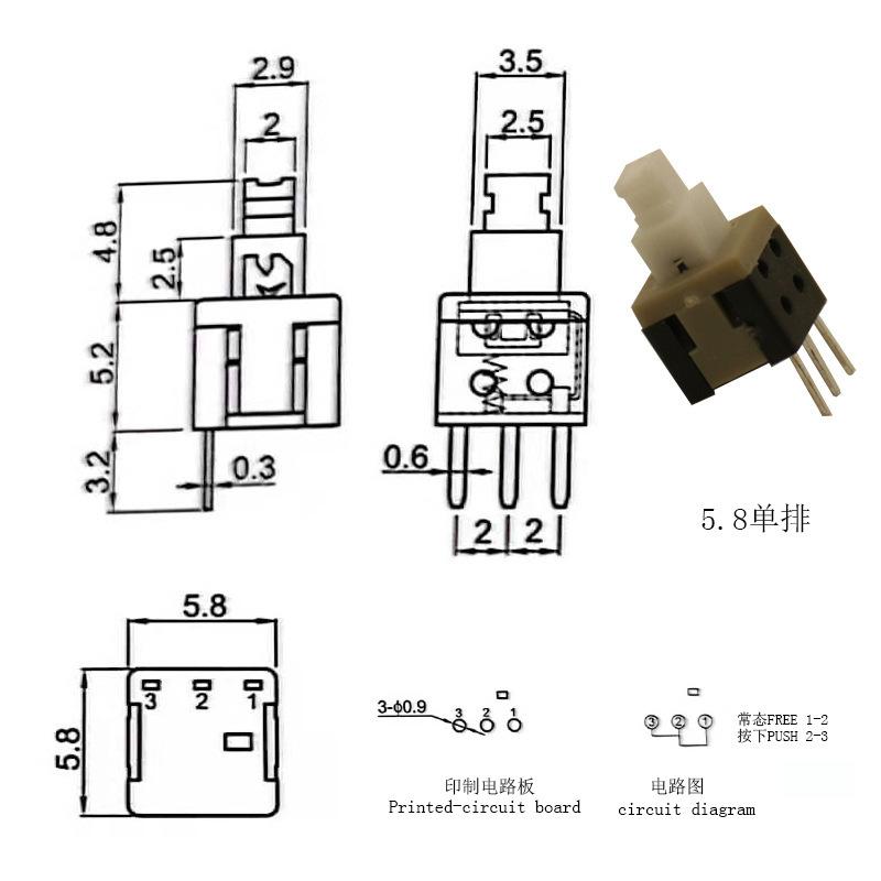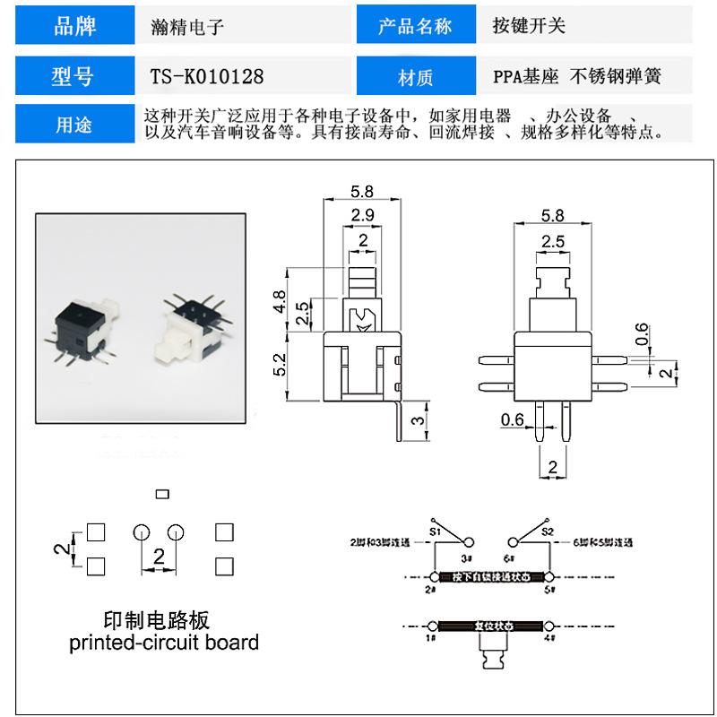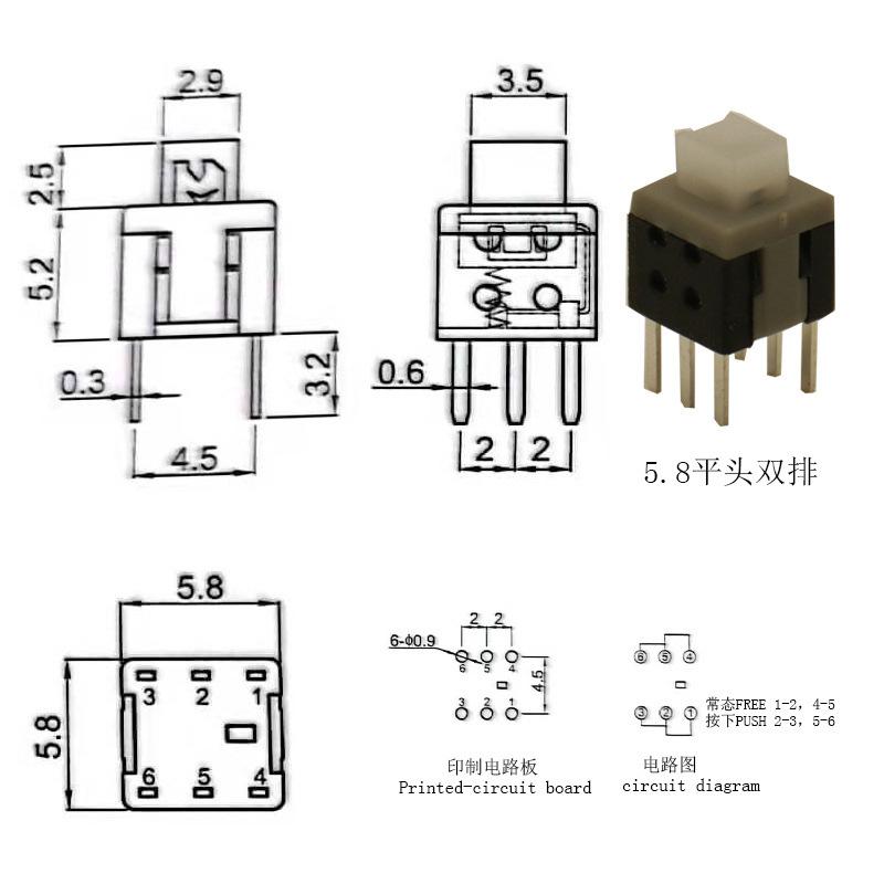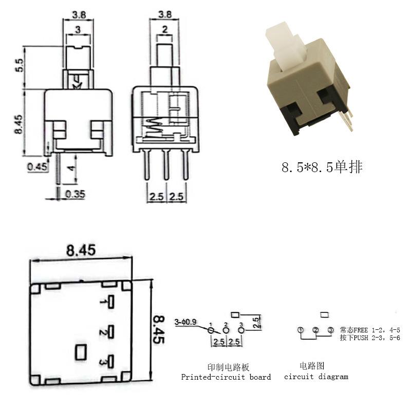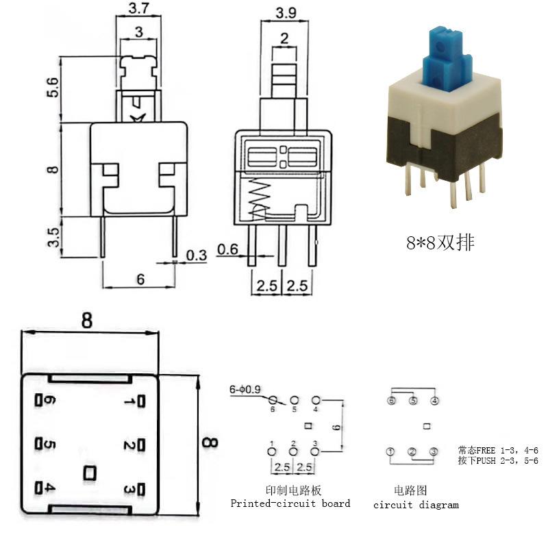 Interruptor de llave Fabricante Hanjing Electronics 7X7 8.5X8 8X8 5.8 Interruptor de autobloqueo Botón táctil de fila simple y doble