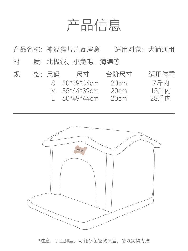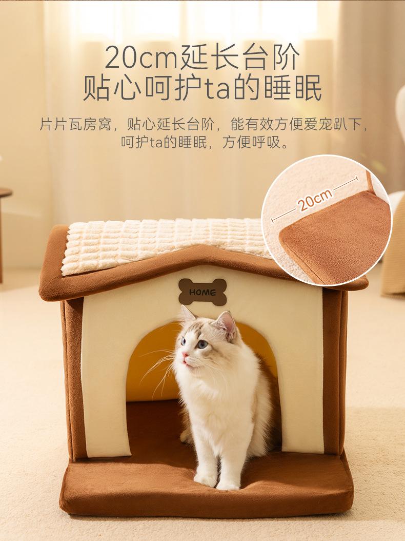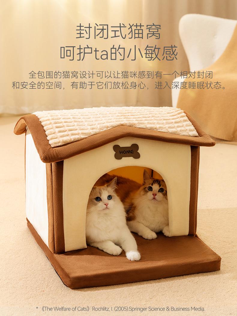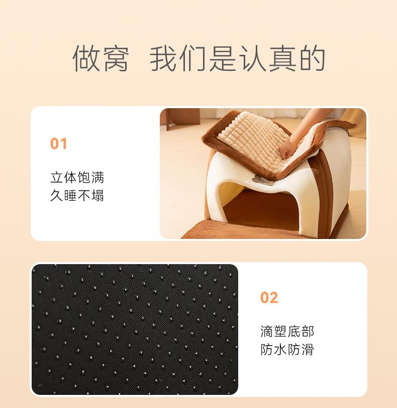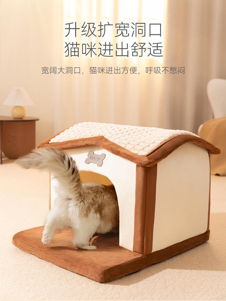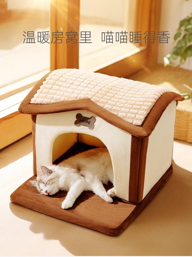 Nido para mascotas cerrado Casa para gatos Invierno cálido Invierno Gato Perro pequeño Perrera Cuatro Estaciones Universal Extraíble y Lavable Estera nido