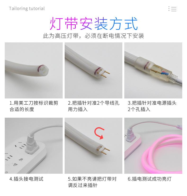Luz de Neón Flexible Redonda de 220V Iluminación de Ingeniería Luz de Línea de Atmósfera con Tira de Luz Lineal Cilíndrica Luminosa de 360 Grados