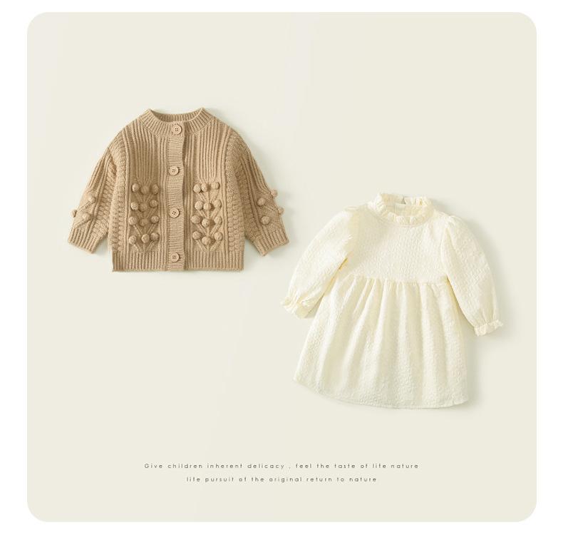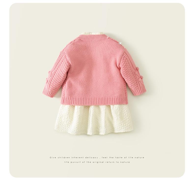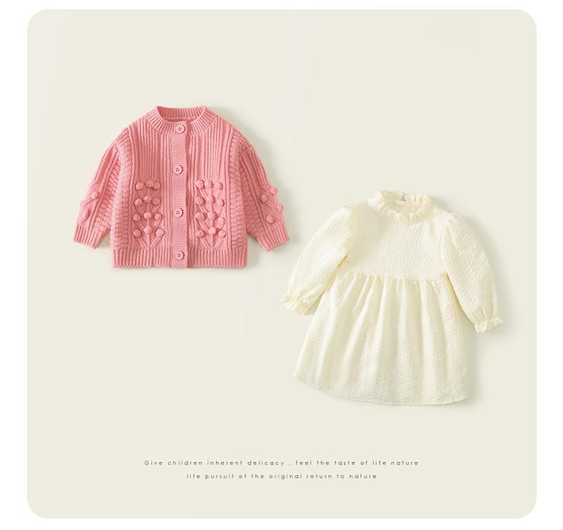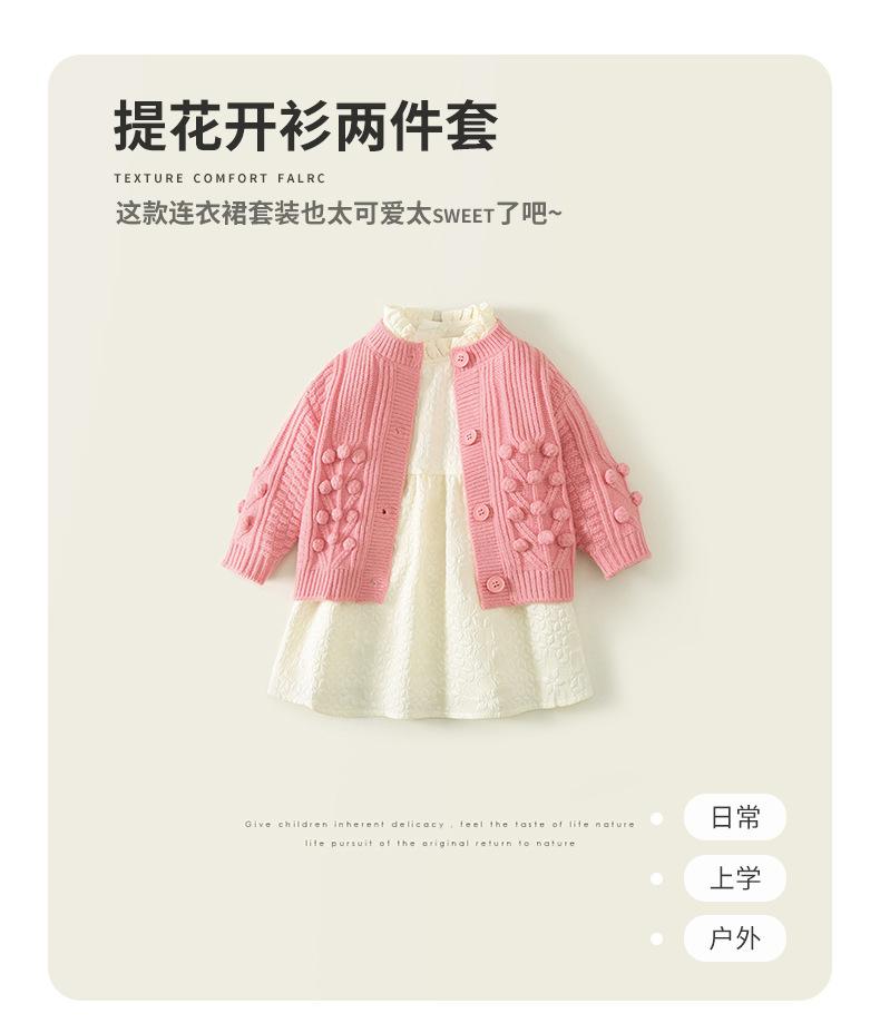 Ropa de Primavera para Niñas 2025 Nuevo Cárdigan de Punto para Niña Vestido de Manga Larga Conjunto de Dos Piezas para Niños Dropshipping Traje para Niños
