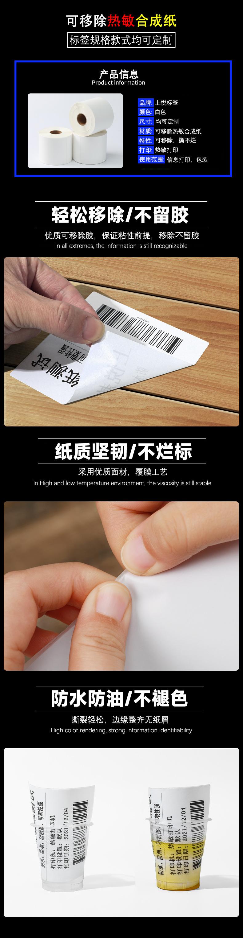Papel de etiqueta removible fácil de rasgar, resistente al agua y al aceite, placa para muebles de vidrio sin pegamento, papel sintético térmico removible
