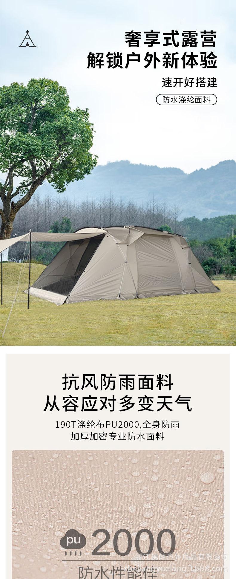 Venta directa de fábrica, tienda de campaña de una habitación y un salón para exteriores, doble protección solar a prueba de lluvia, tienda de túnel multifuncional, gran espacio