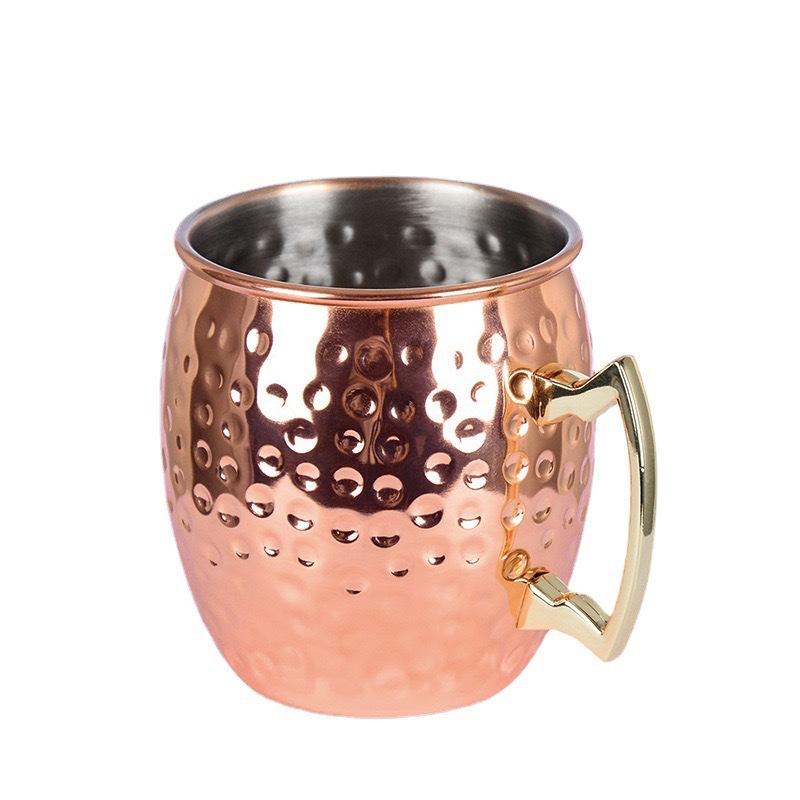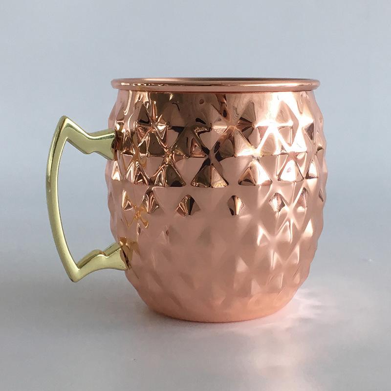 Comercio exterior acero inoxidable 304 tambor diamante Vaso Vaso Moscow mule Vaso acero inoxidable chapado en cobre punta martillada diamante vaso de cerveza