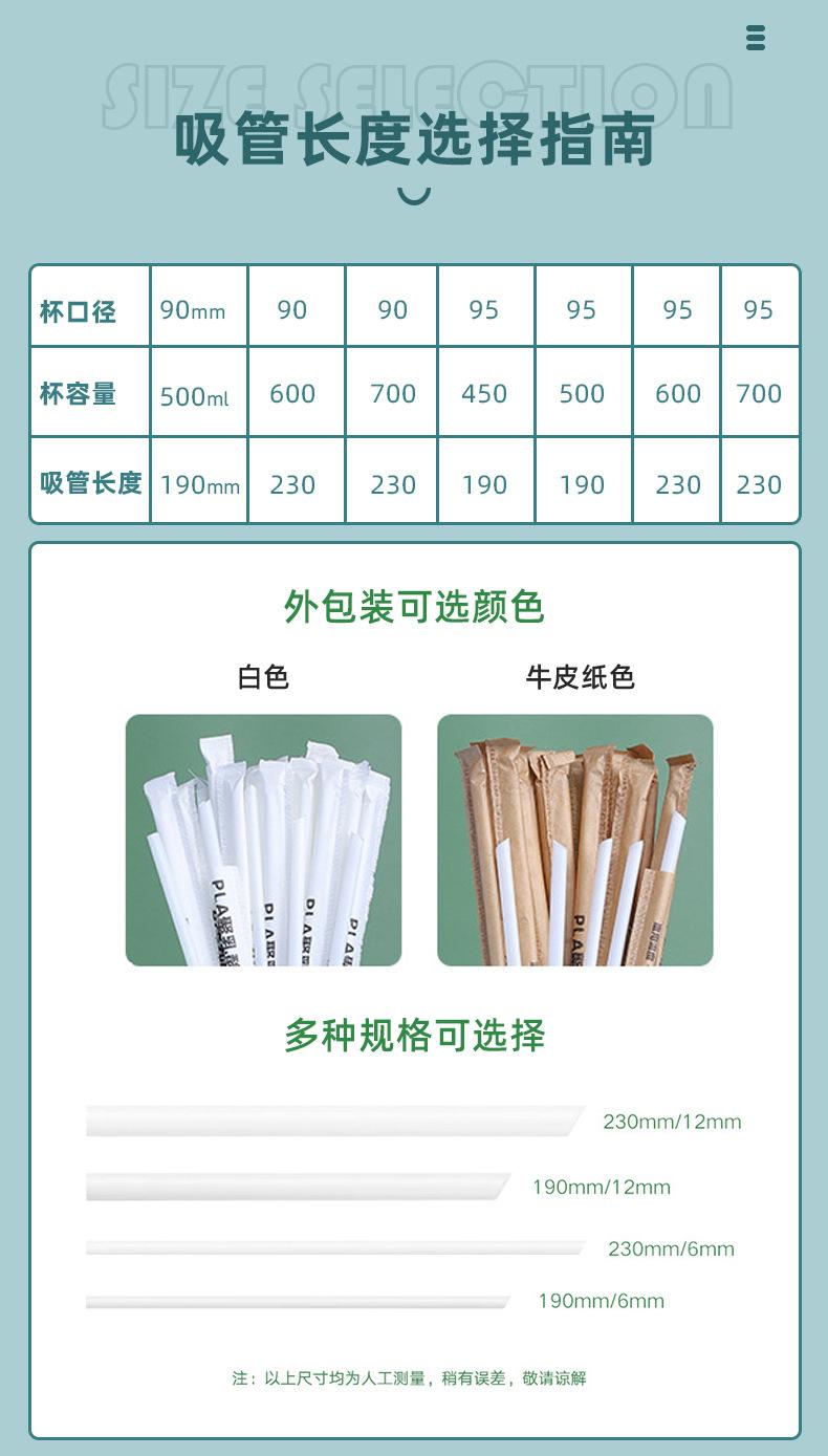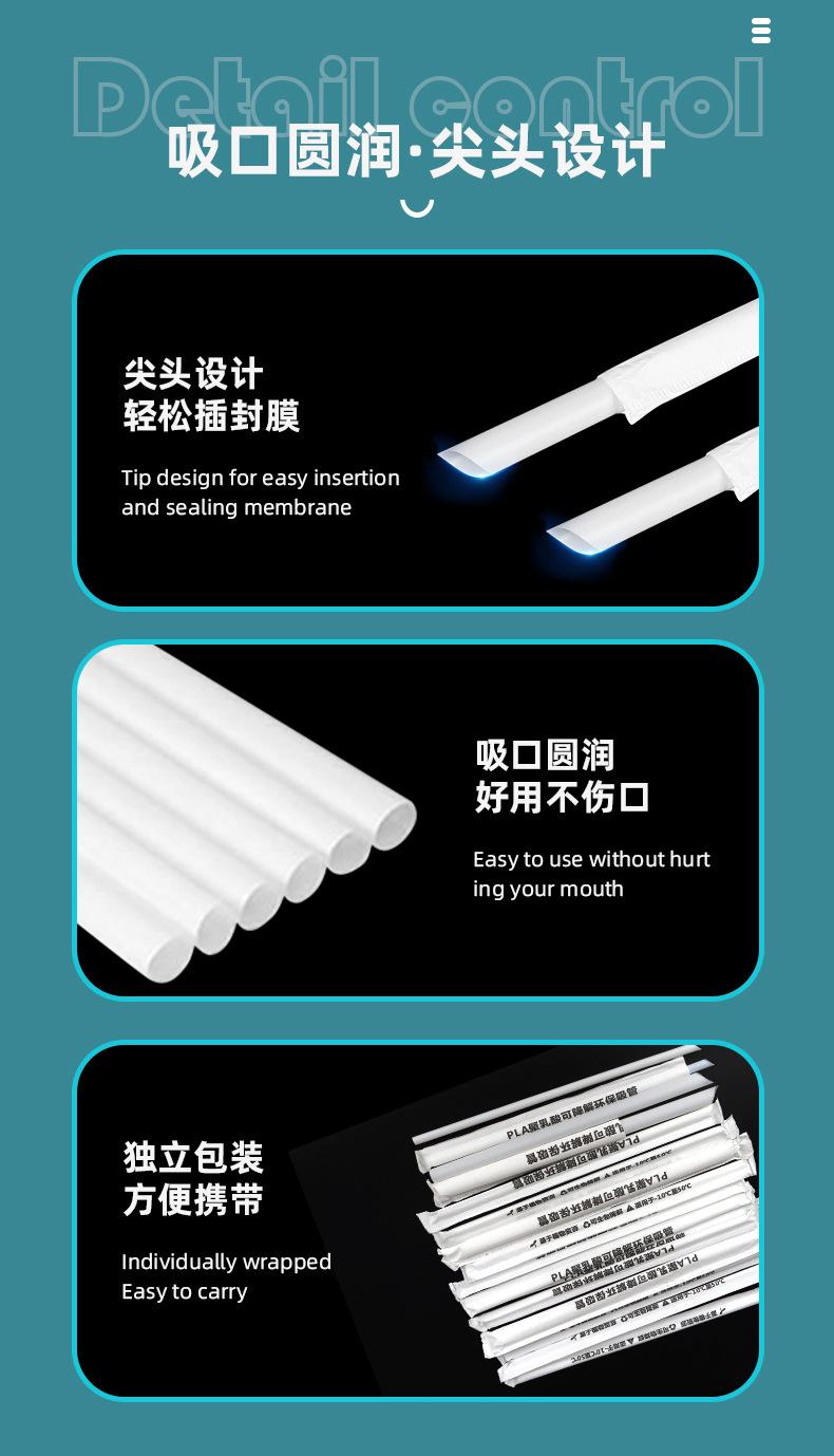 PLA ácido poliláctico desechable soporte para pajitas de bebidas de té con leche tubo recto empaque individual pajita degradable de PLA al por mayor