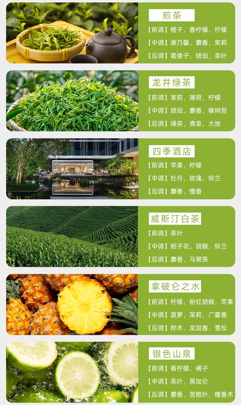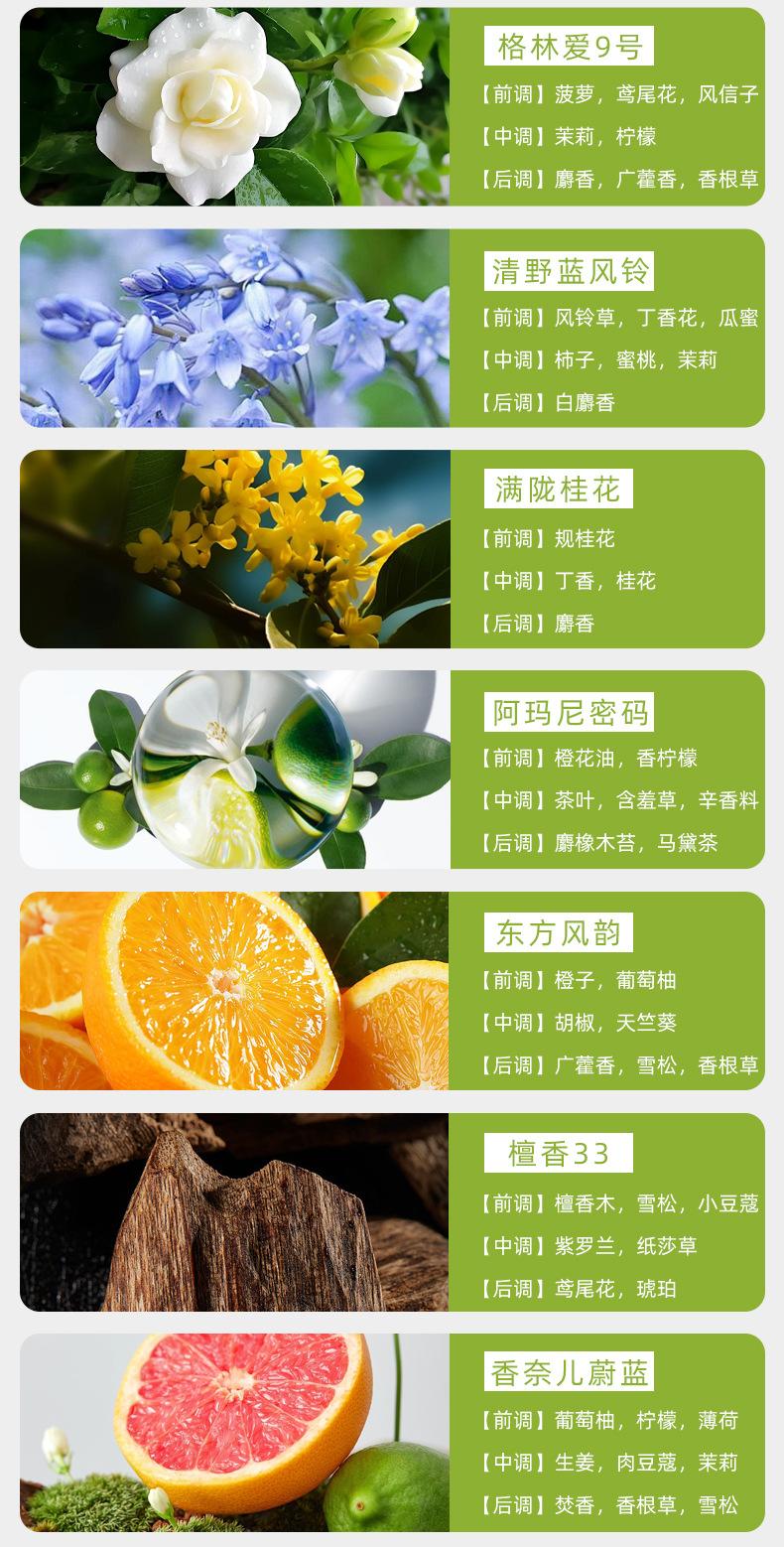 Green Love 9, Qingye Blue Wind Bell, Manlong Guiyu, Armani Password (Explosions), Oriental Charm, Sandalwood 3...