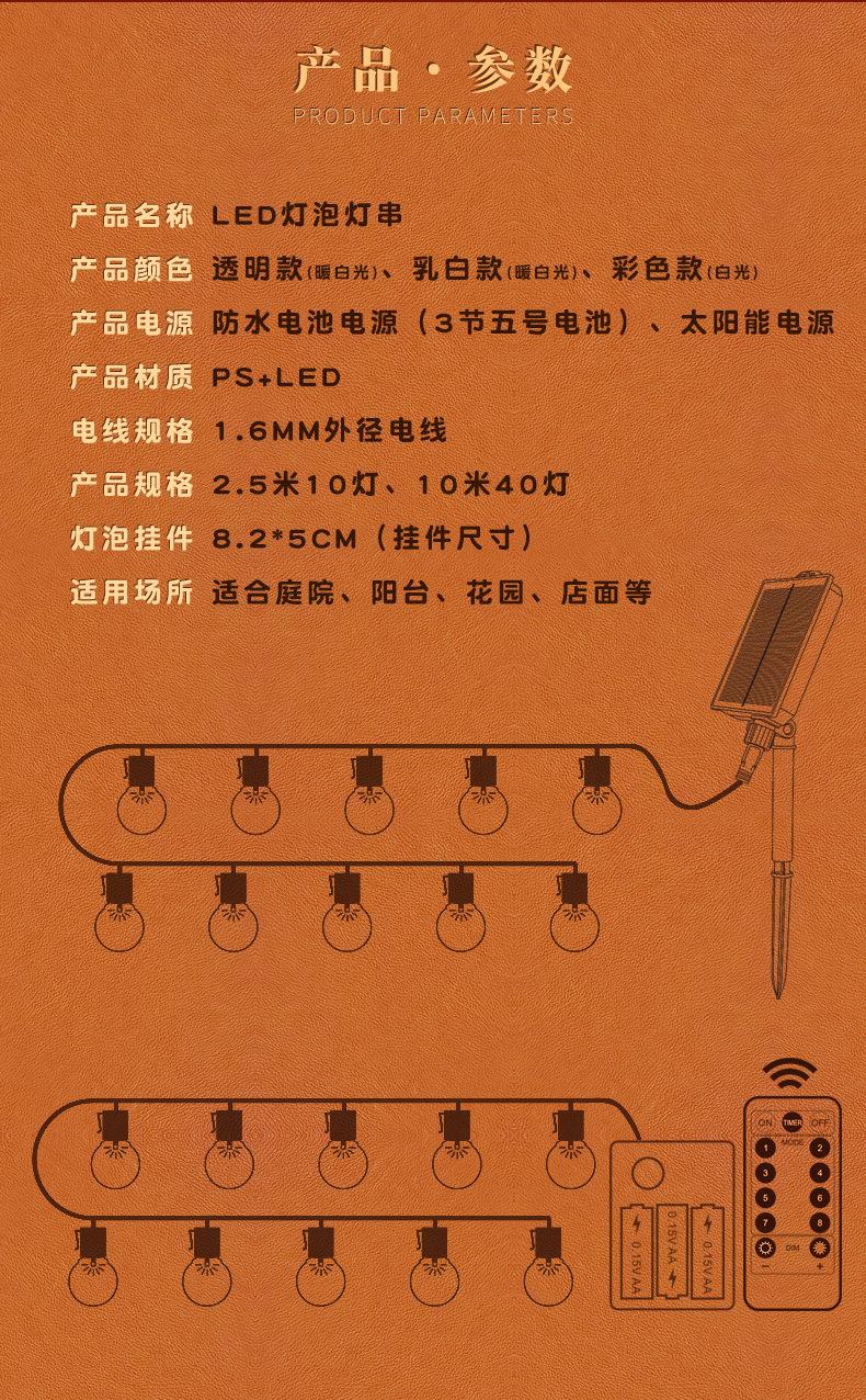 Guirnalda de luces LED con bombillas solares para exteriores, patio, jardín, ambiente, luces decorativas para camping, luces de estrellas luminosas.