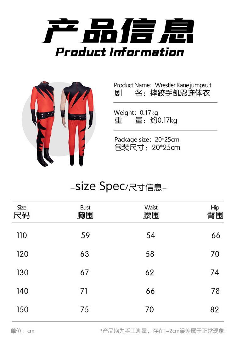 Traje Ceñido de Cosplay de Luchador de la WWE Halloween Mono Infantil Disfraz de Cosplay Kane Manga Corta