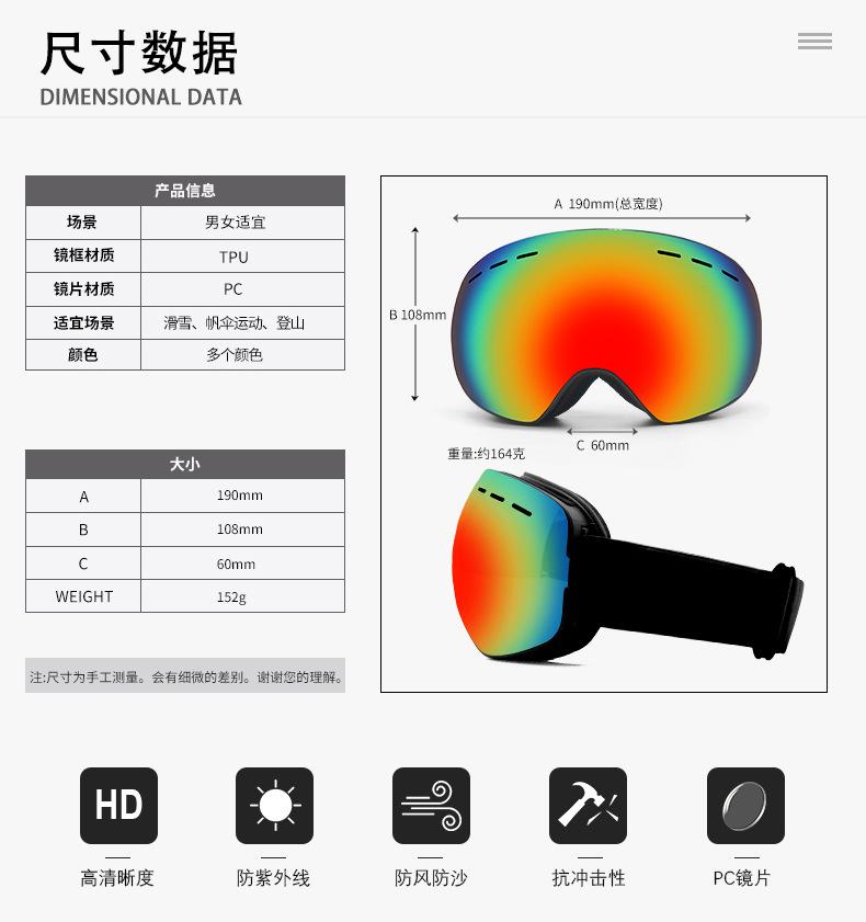 Gafas de Esquí Antivaho de Doble Capa Transfronterizas, Gafas de Esquí para Viento y Arena, Gafas para Miopía con Clip, Equipo de Gafas para Hombre y Mujer