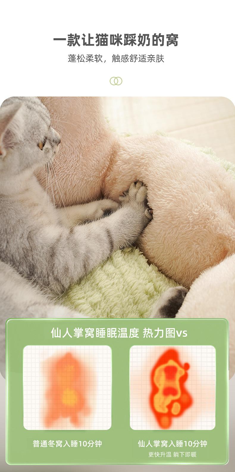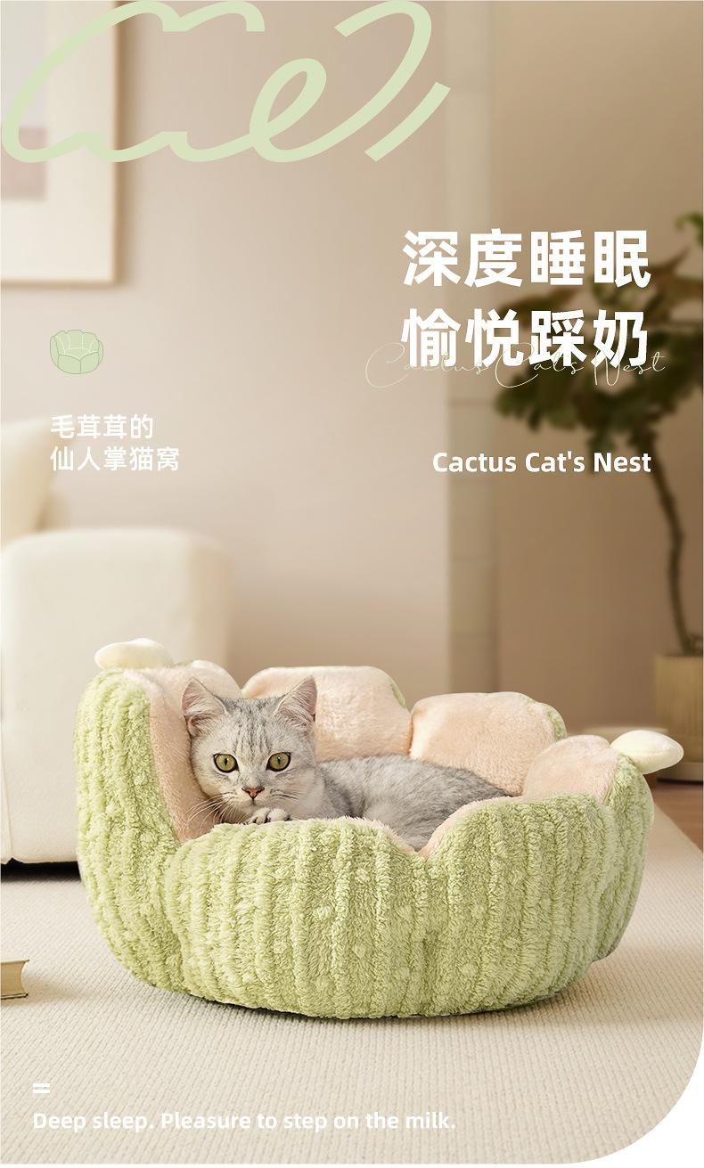 Caseta para Gatos de Otoño e Invierno, Cama para Gatos, Colchoneta para Dormir de Cactus, Nido Redondo para Gatos, Saco de Dormir Cálido y Grueso para Gatos, Nido para Mascotas, Habitación para Gatos