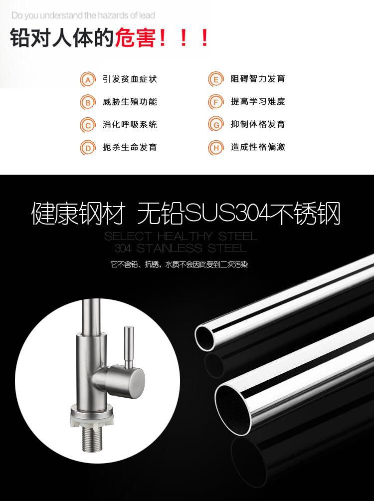 (2) El cuerpo del grifo de acero inoxidable se fabrica mediante fundición de precisión. Las superficies internas y externas del producto son lisas y delicadas, sin riesgos para la salud ni la seguridad.