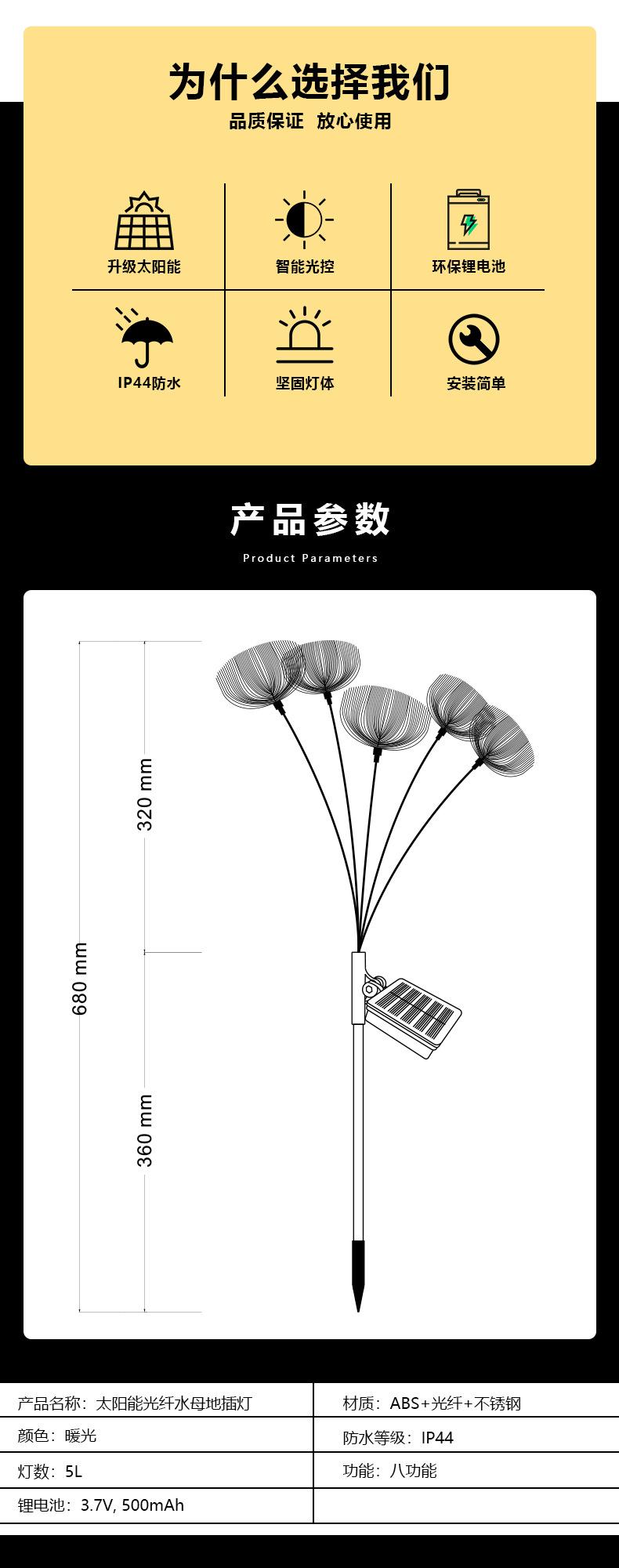Polycrystalline silicon solar panel: 5V/120mAh 5L (optical fiber jellyfish 8cm)