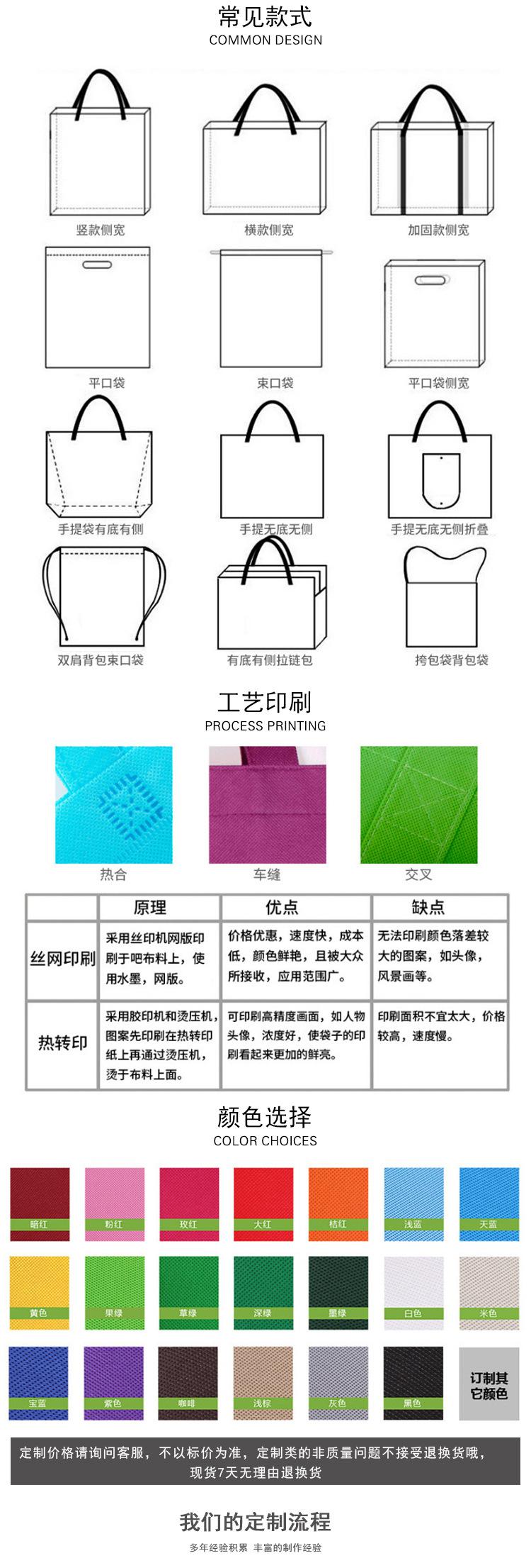 Bolsa no tejida recubierta en stock, impresión a color, publicidad, bolsa de regalo, ropa, bolsa de compras tridimensional, impresión de bolsos.