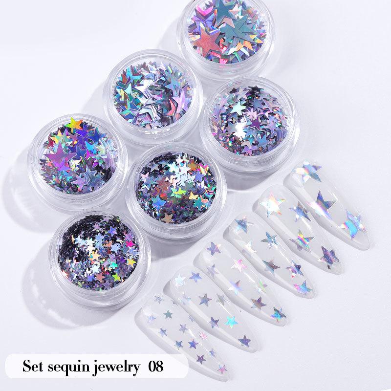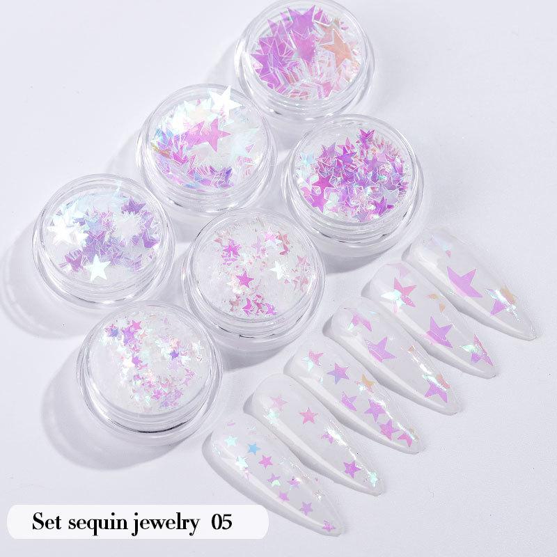 Uñas con lentejuelas y estilo transfronterizo, con purpurina dorada y plateada, con forma de corazón y parche de mariposa.