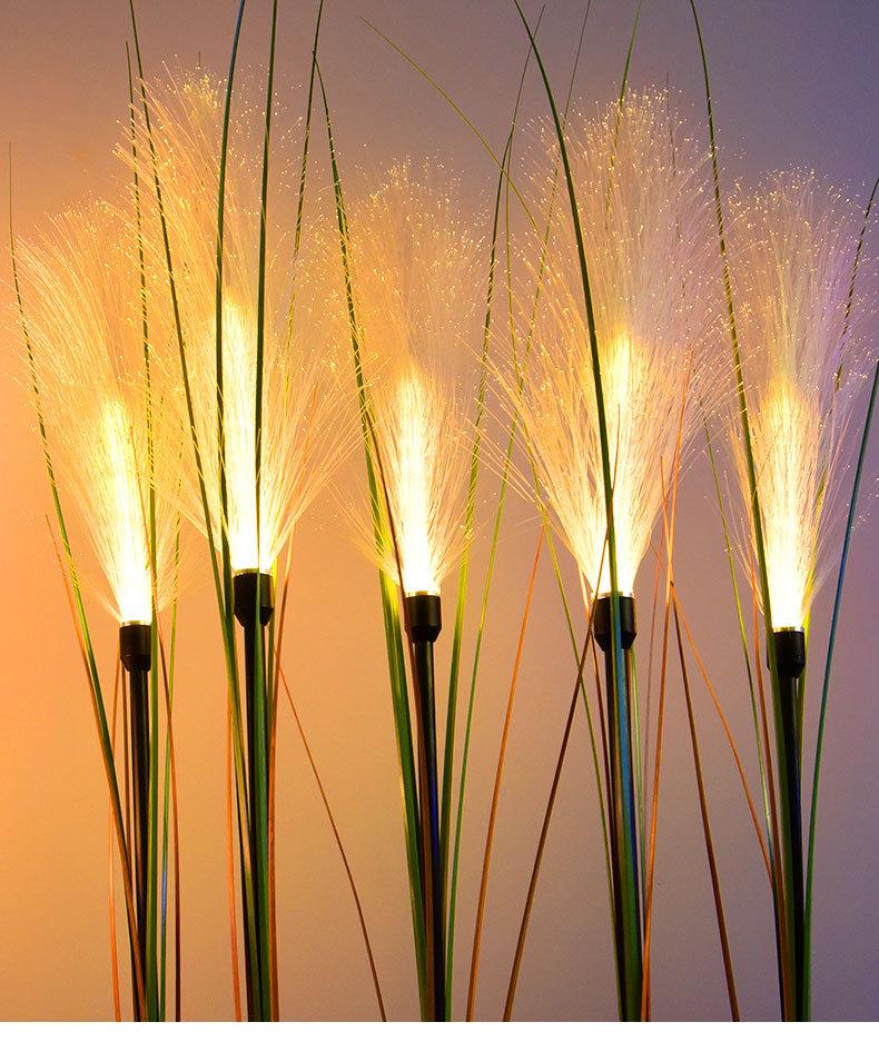 Nueva lámpara LED solar de caña para exteriores, impermeable, de fibra óptica de lana, para patio, jardín, decorativa, para césped.