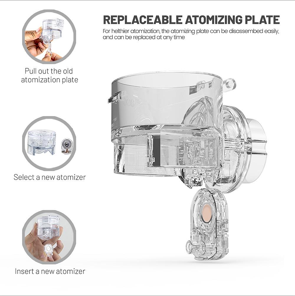 8. Componentes independientes: componentes de atomización independientes, fáciles de limpiar, desmontaje con un solo clic, conveniente para la limpieza y desinfección, y evita infecciones cruzadas.