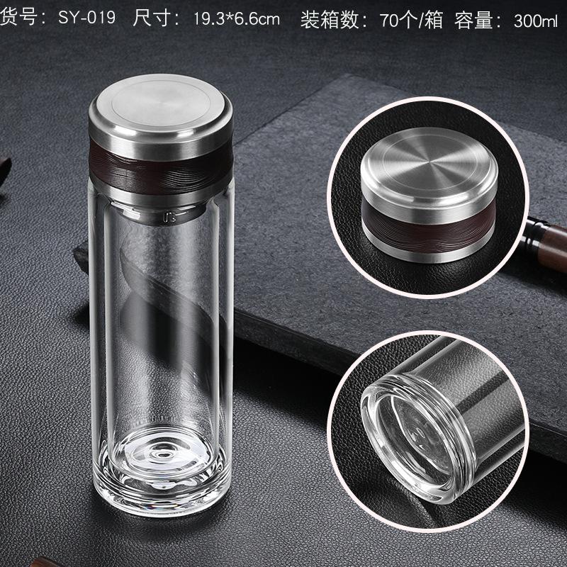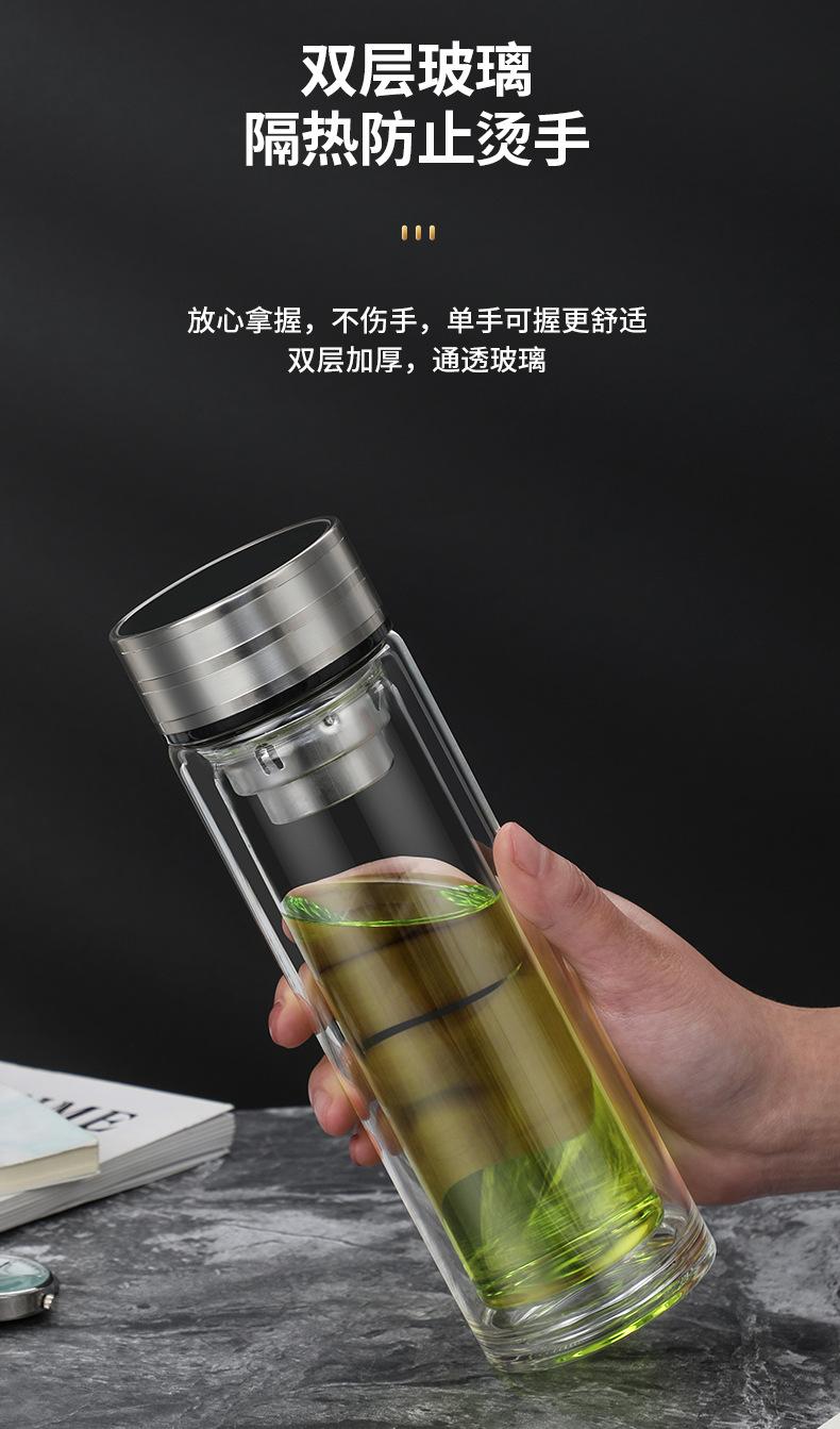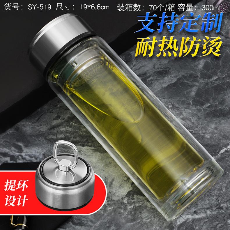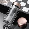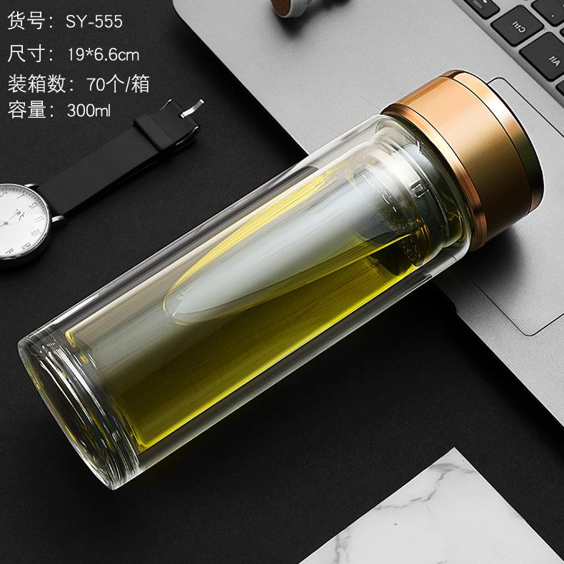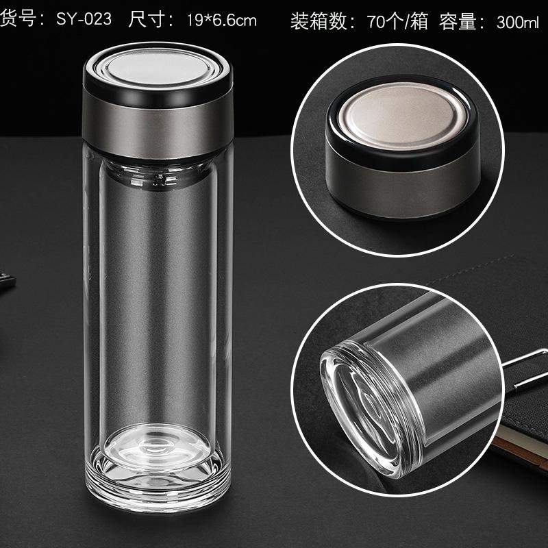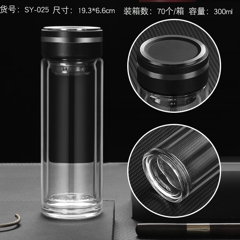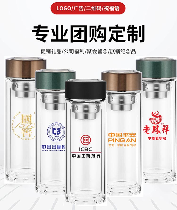 Venta al por mayor de vidrio transparente de doble capa con impresión de logotipos, regalo publicitario, taza de té, taza de agua de borosilicato
