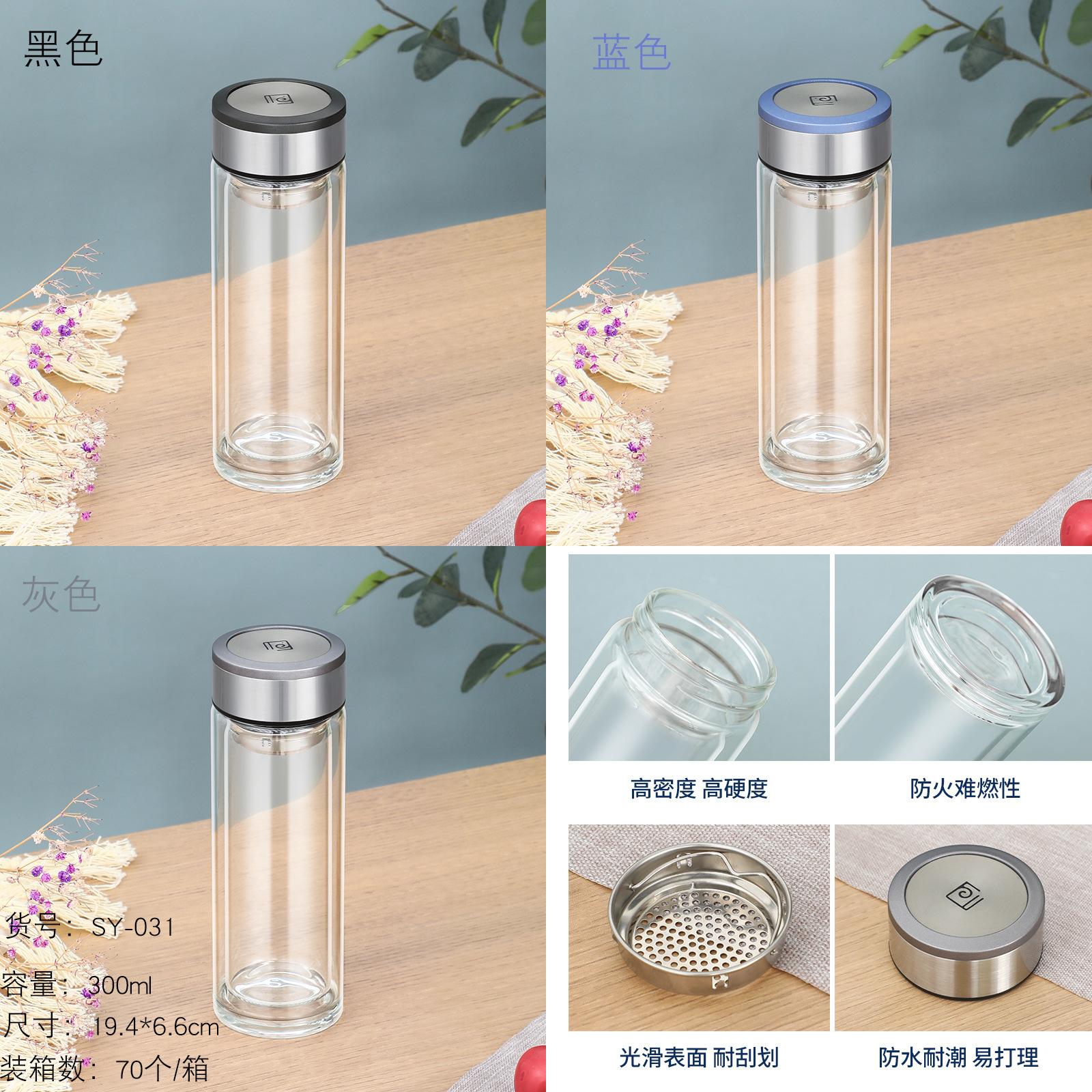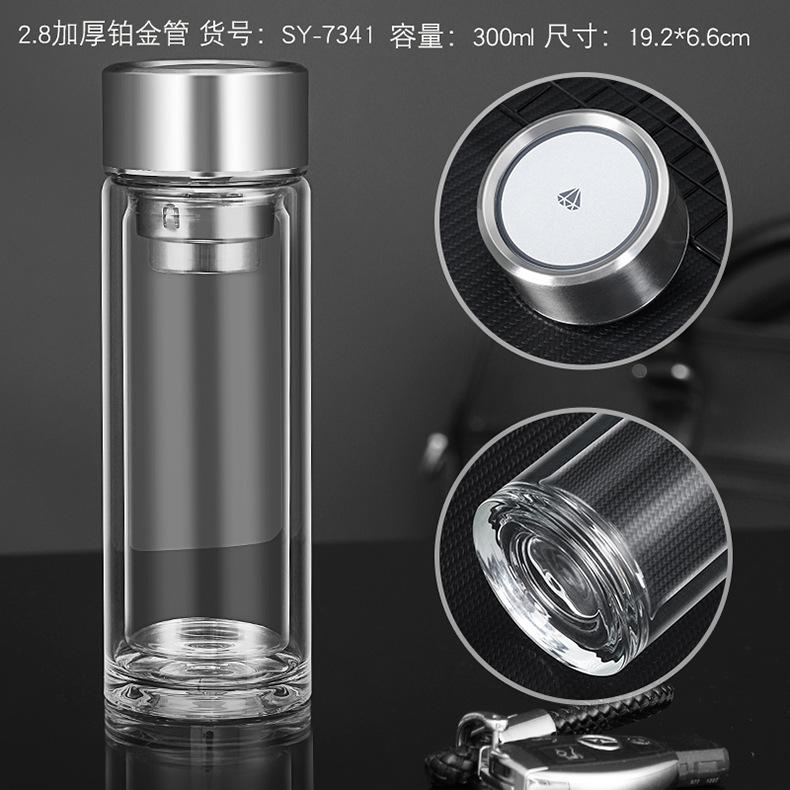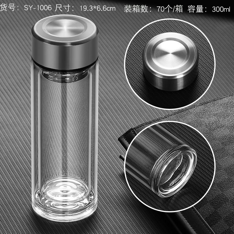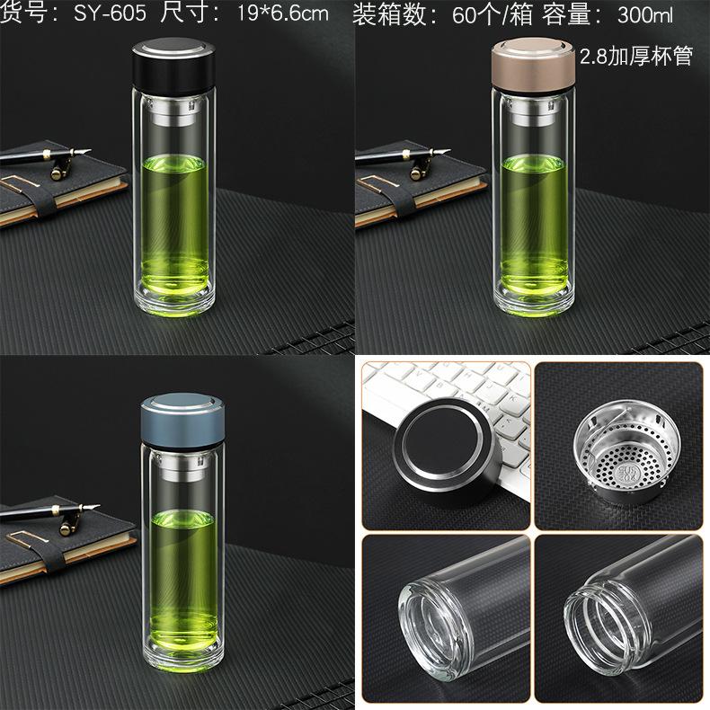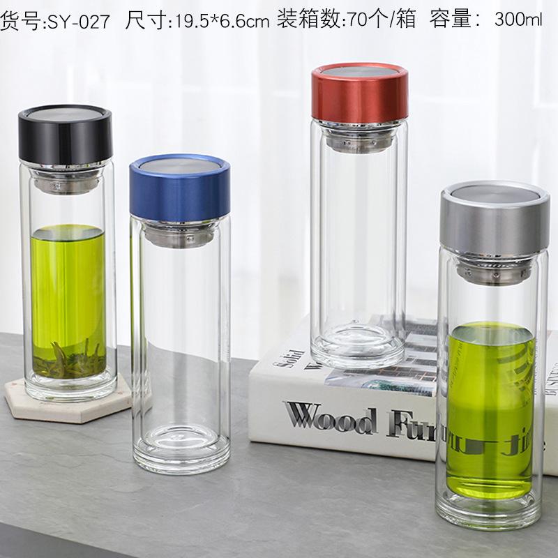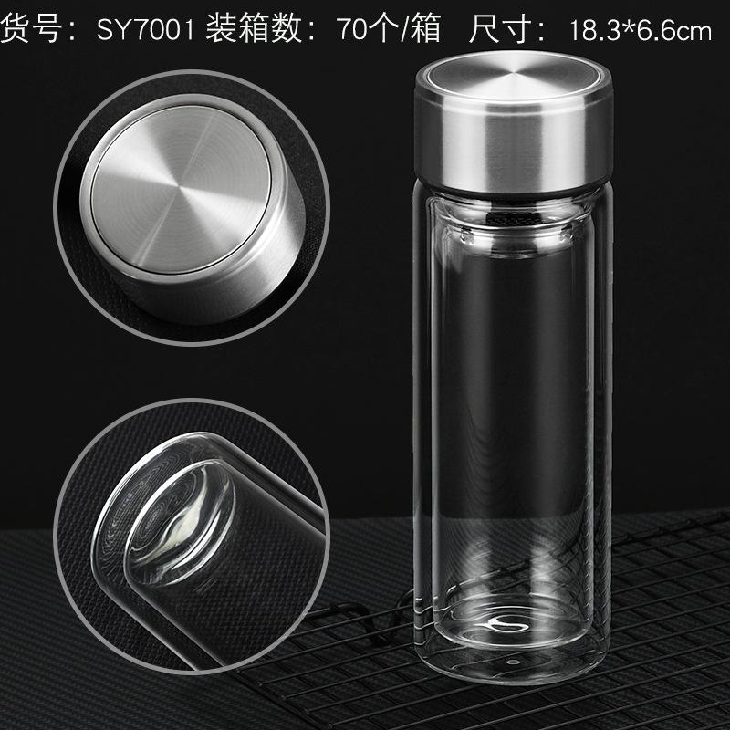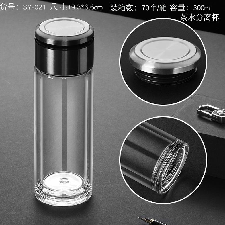 Venta al por mayor de vidrio transparente de doble capa con impresión de logotipos, regalo publicitario, taza de té, taza de agua de borosilicato