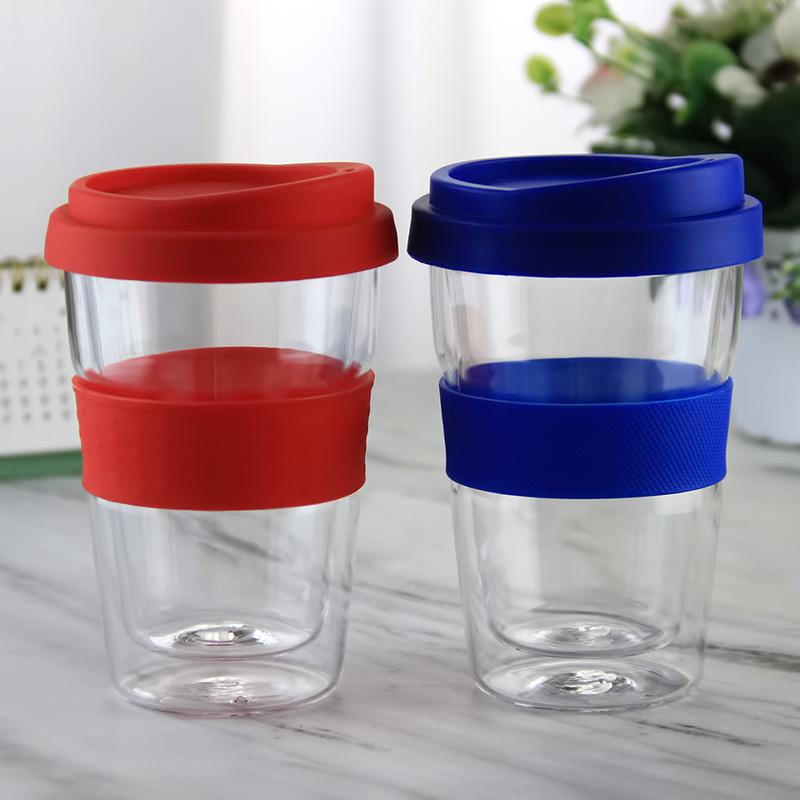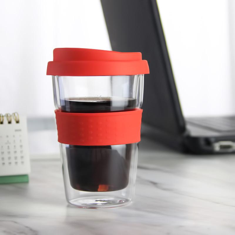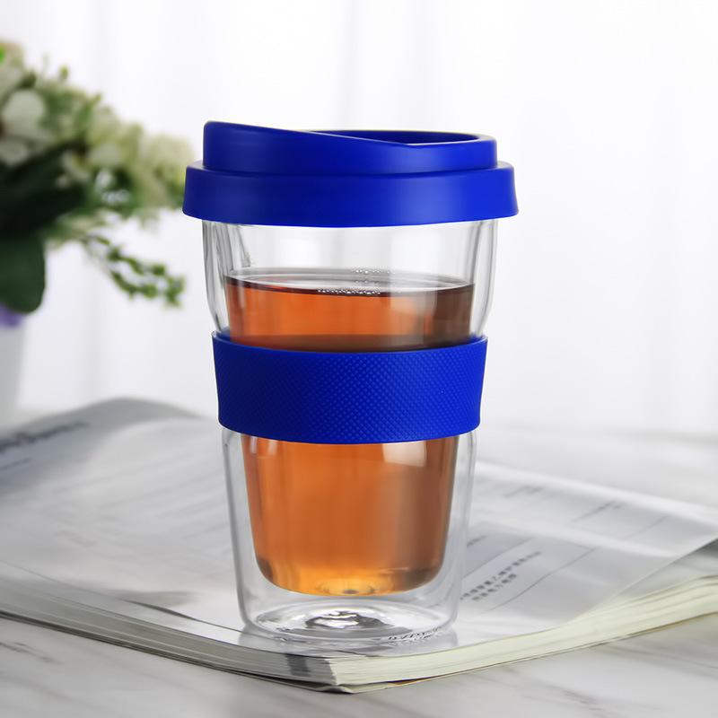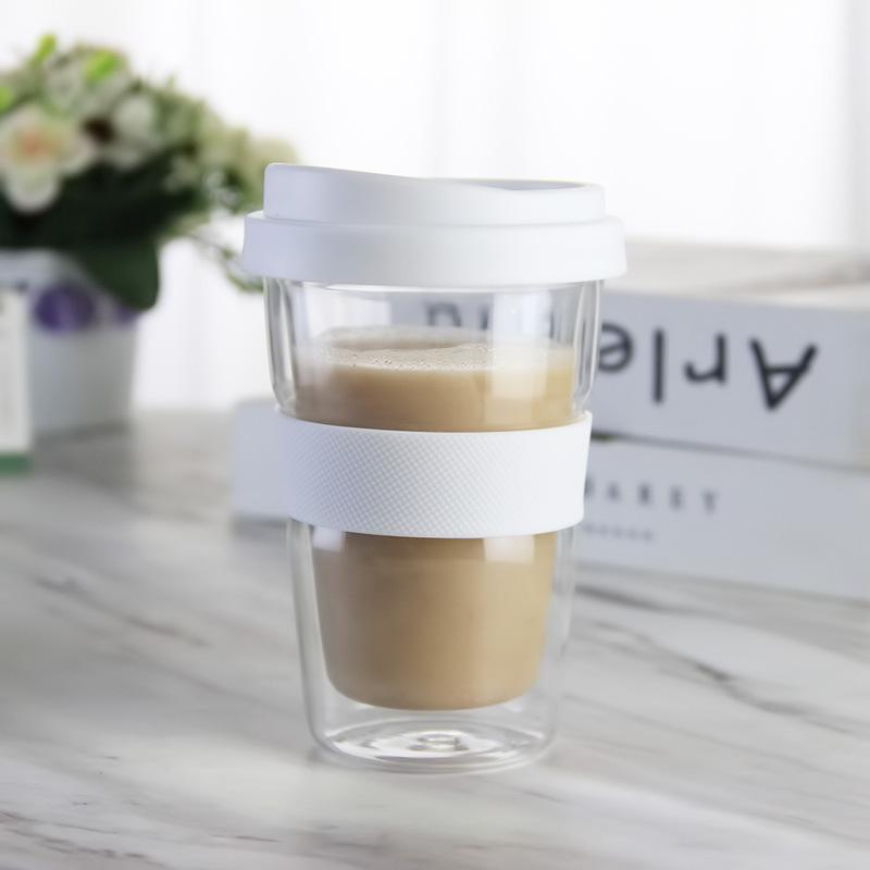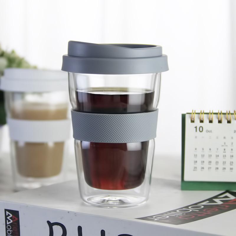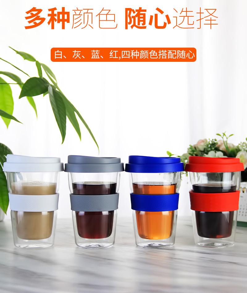 Taza de Vidrio de Doble Capa Resistente al Calor Personalizada con Tapa de Silicona, Taza de Café de Vidrio Engrosado, Taza Transparente Nueva para Oficina