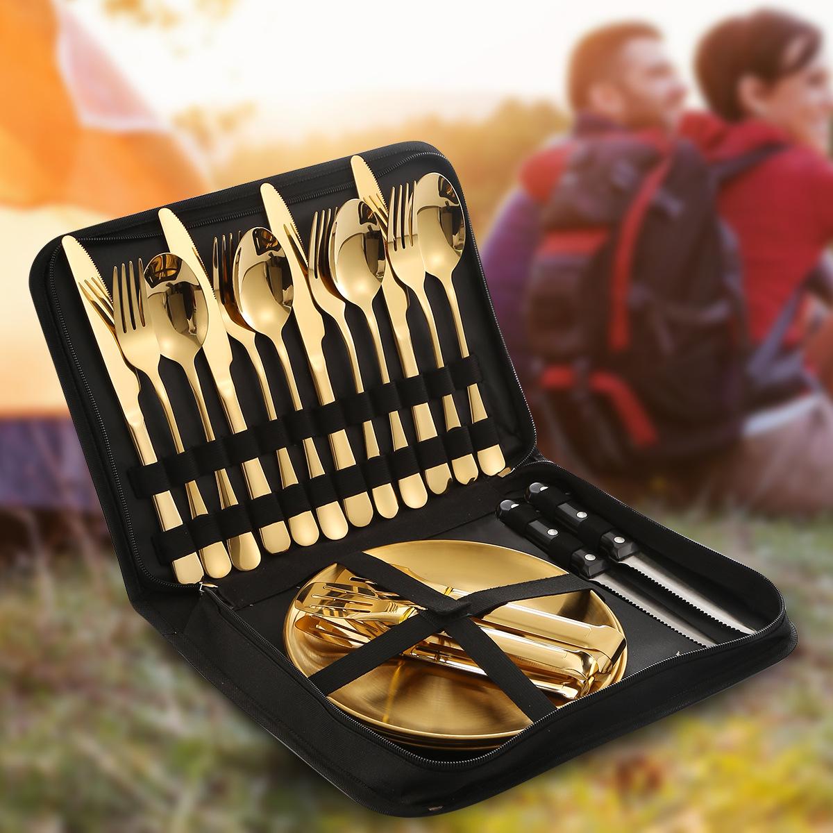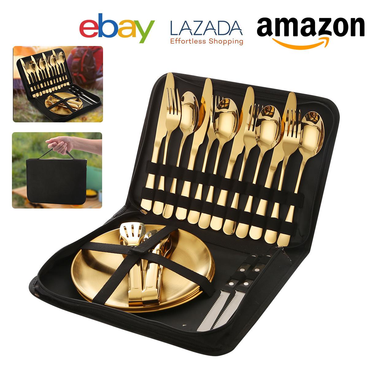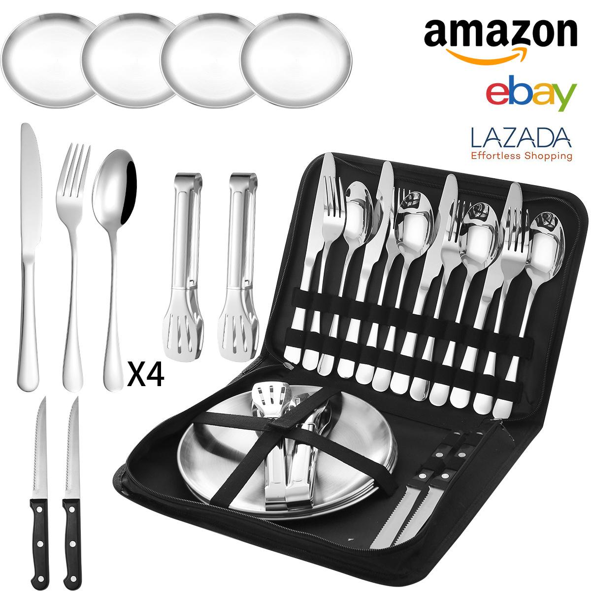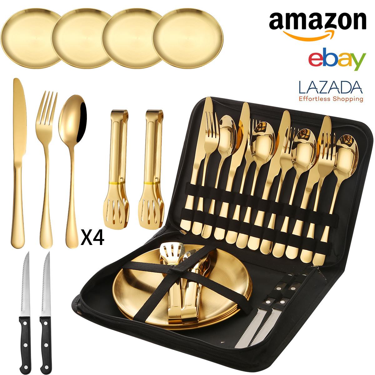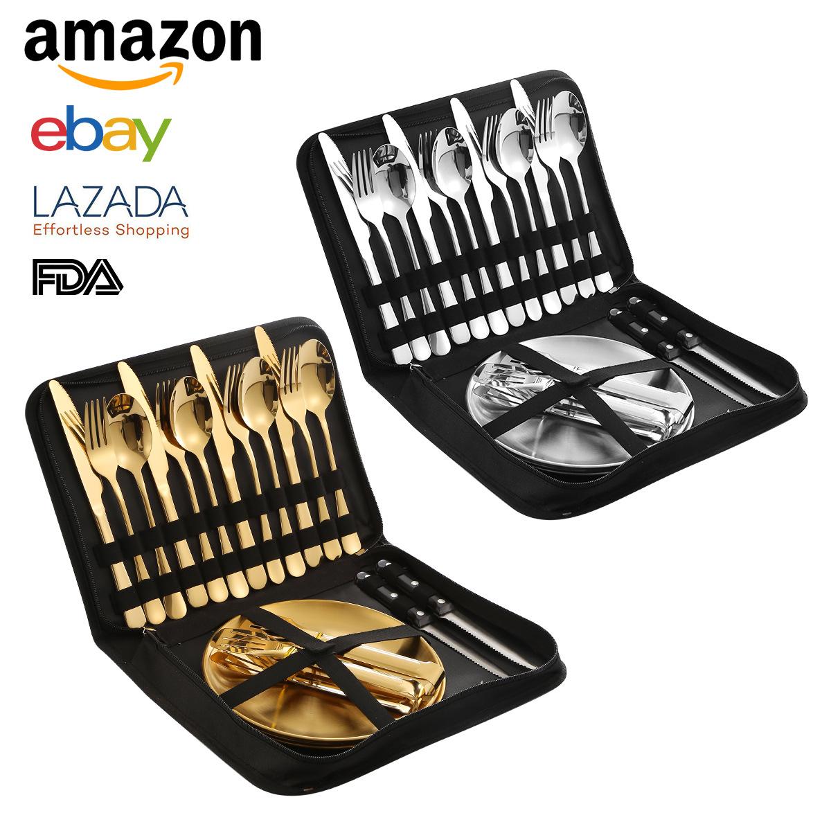Vajilla de acero inoxidable 1010 de Amazon transfronteriza, juego de 20 piezas con cuchillo, tenedor y cuchara, vajilla occidental práctica, cuchillo, tenedor y cuchara para carne