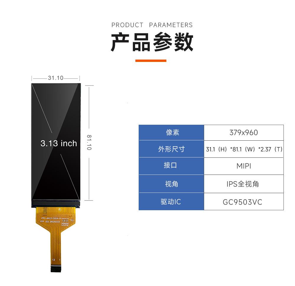 Pantalla LCD de matriz de puntos de 379*960 con ángulo de visión completo, personalizada por Rui Xianxi, pantalla a color TFT de 3,13 pulgadas