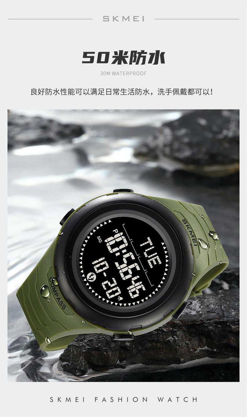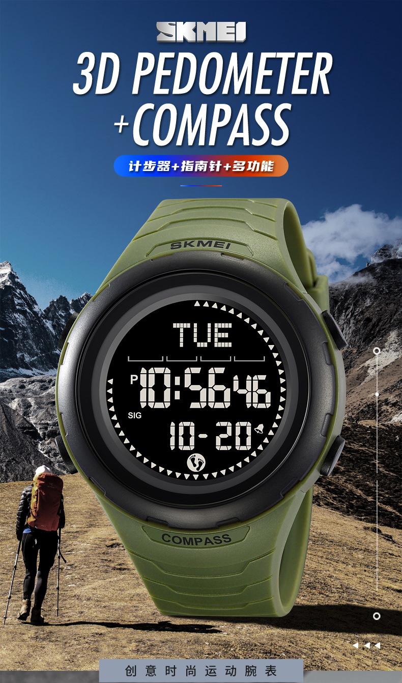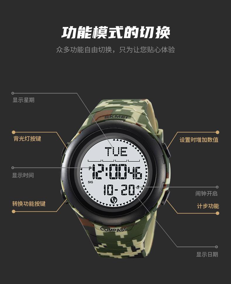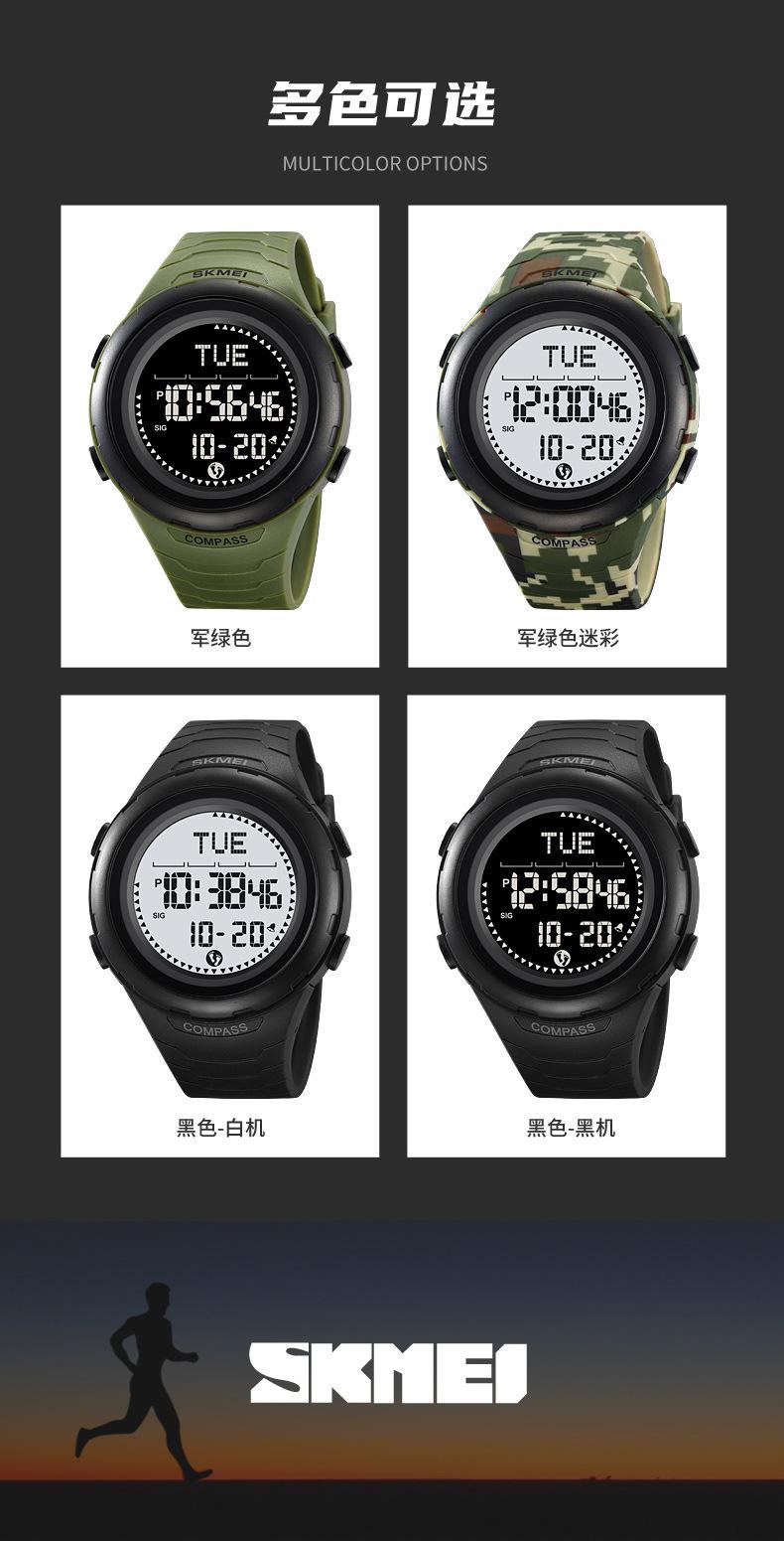 Reloj Skmei con brújula para hombre, reloj electrónico multifunción de camuflaje, luminoso, resistente al agua, para deportes al aire libre.