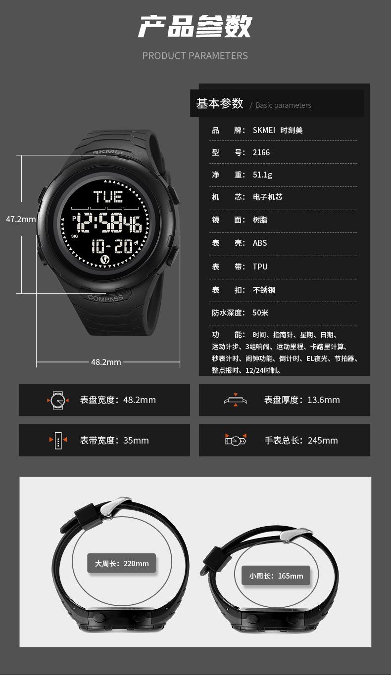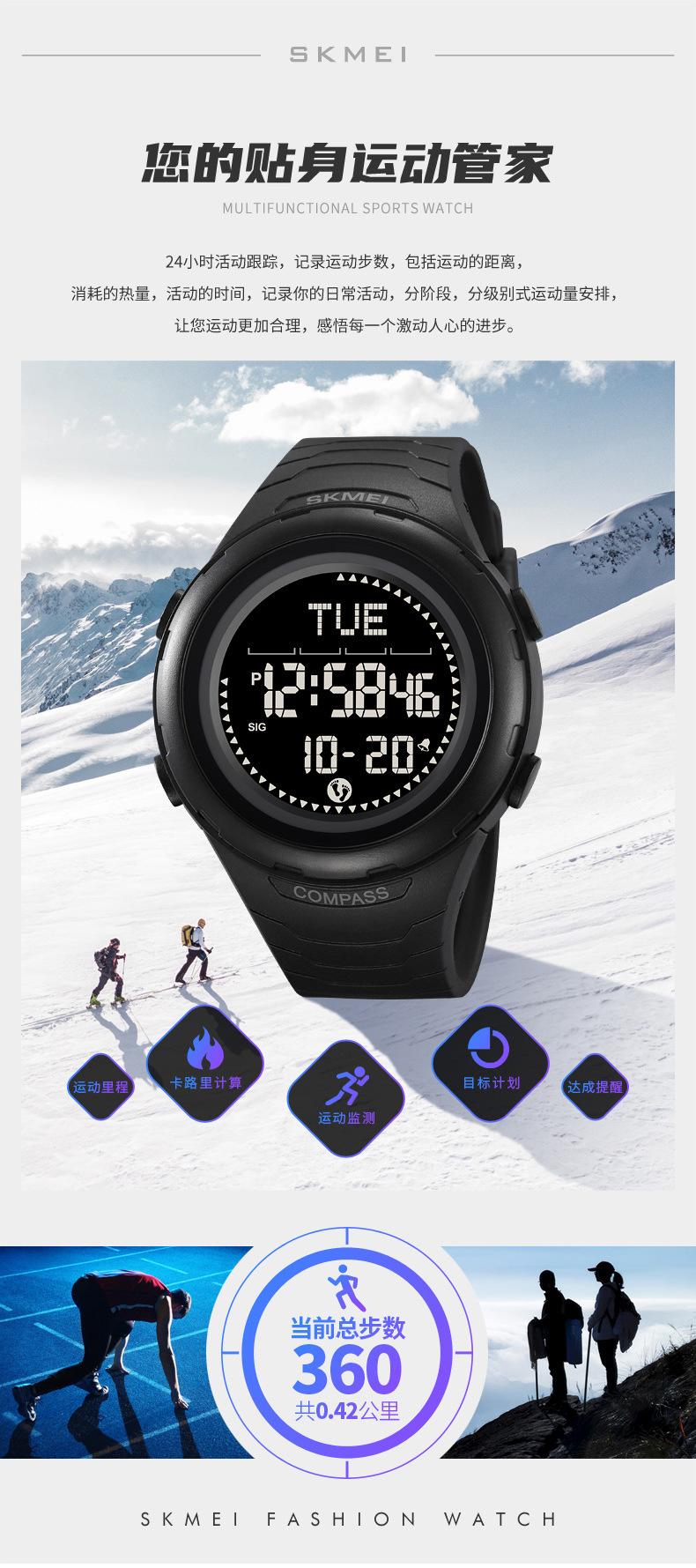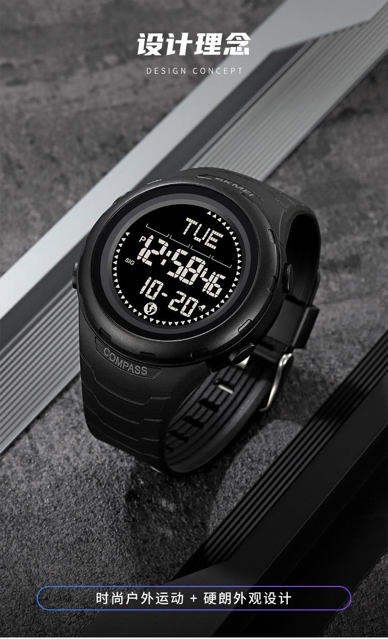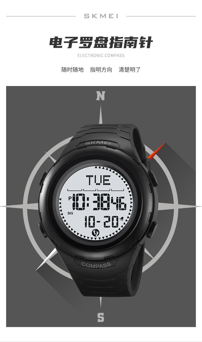 Reloj Skmei con brújula para hombre, reloj electrónico multifunción de camuflaje, luminoso, resistente al agua, para deportes al aire libre.