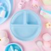 Plato de Cena de Silicona Leden para Bebé, Vajilla para Niños, Ventosa, Compartimento Integrado, Tazón de Aprendizaje de Silicona para Bebé, Set Anticaída