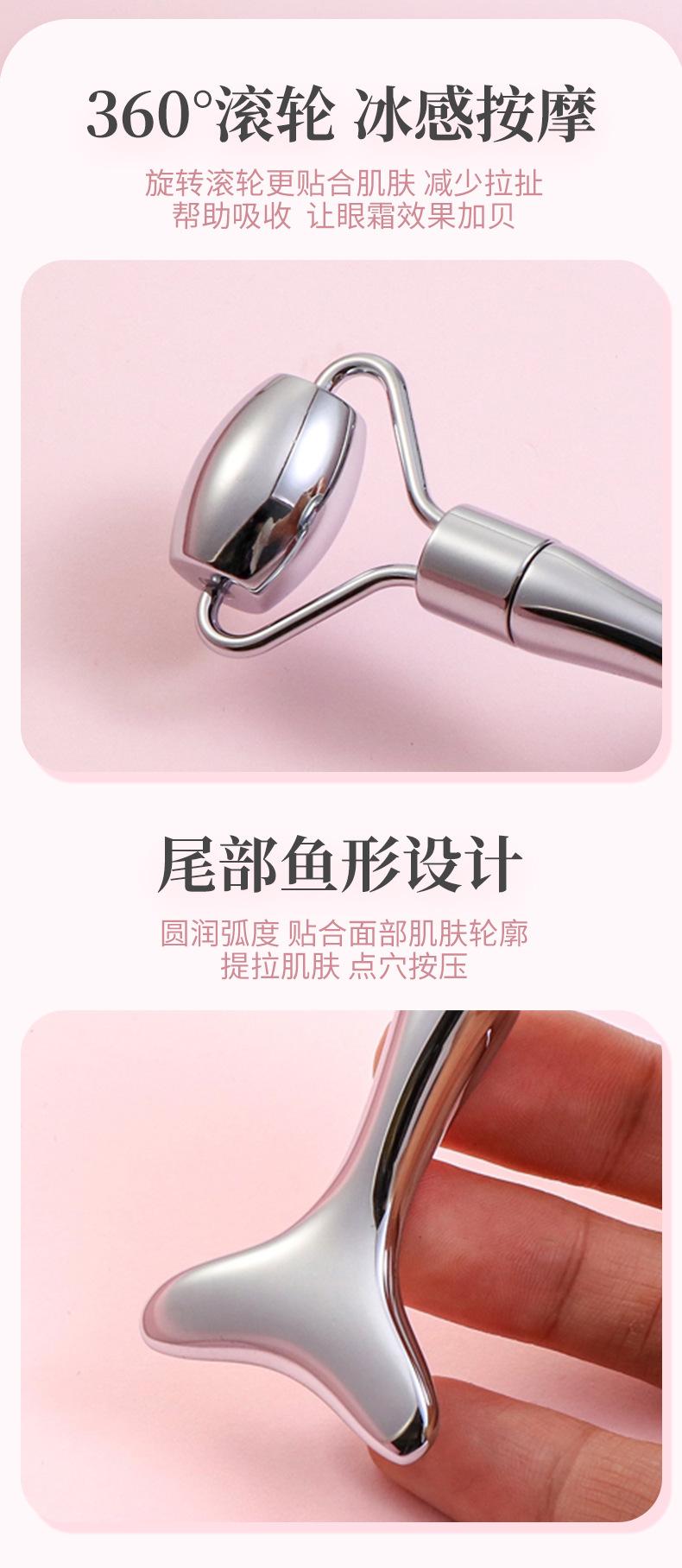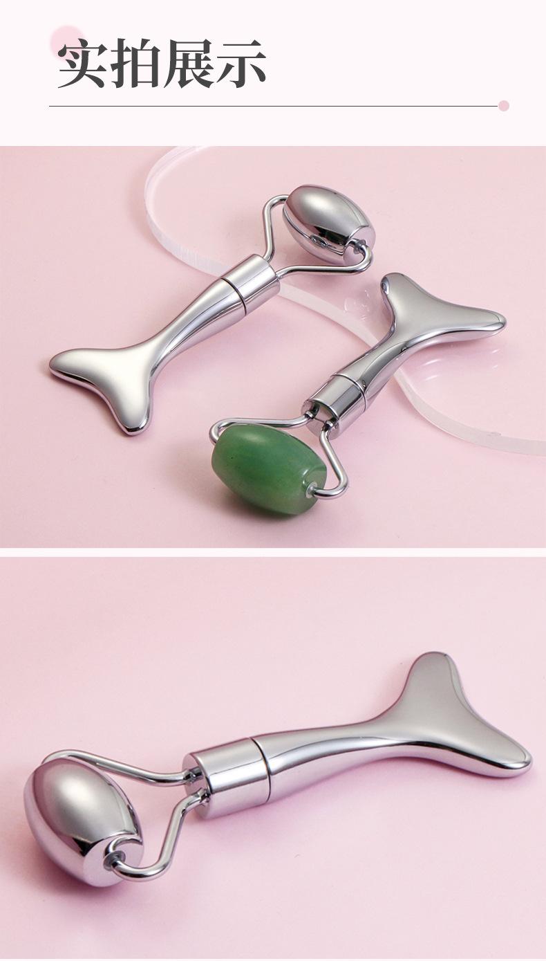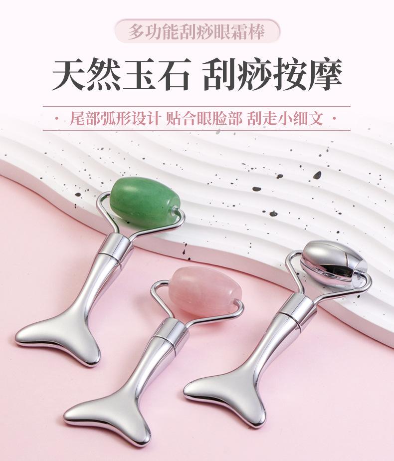 Rodillo Masajeador Facial de Jade de Cristal Rosa al por Mayor Rodillo de Masaje Facial Rodillo Facial de Sirena para Raspado Palo de Masaje Facial con Agujas