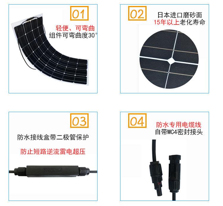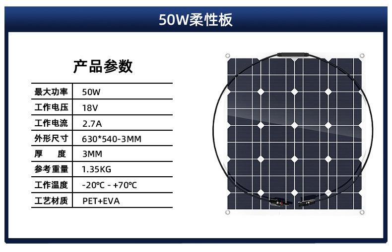Panel Solar de 50W Panel Flexible Ensamblaje Fotovoltaico Parche de Silicio Monocristalino Techo de RV Panel Doméstico de Generación de Energía Solar