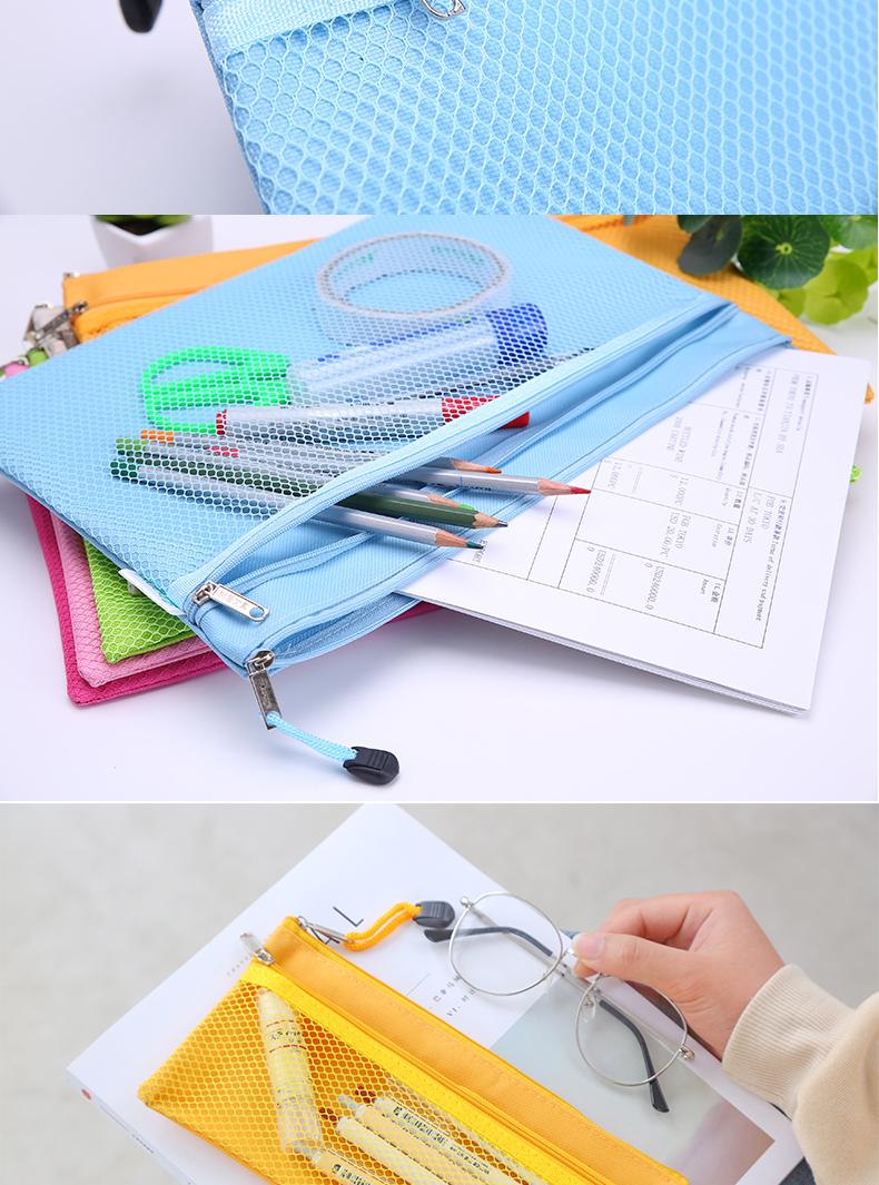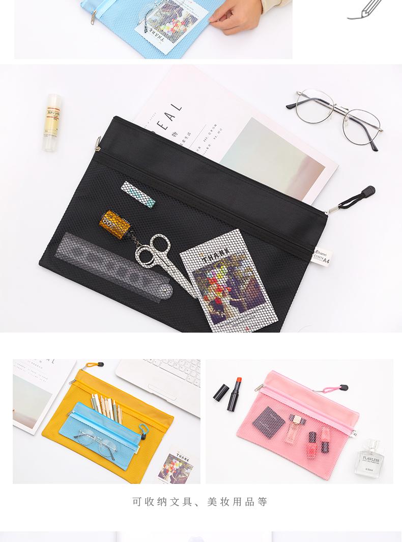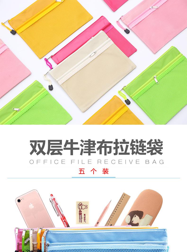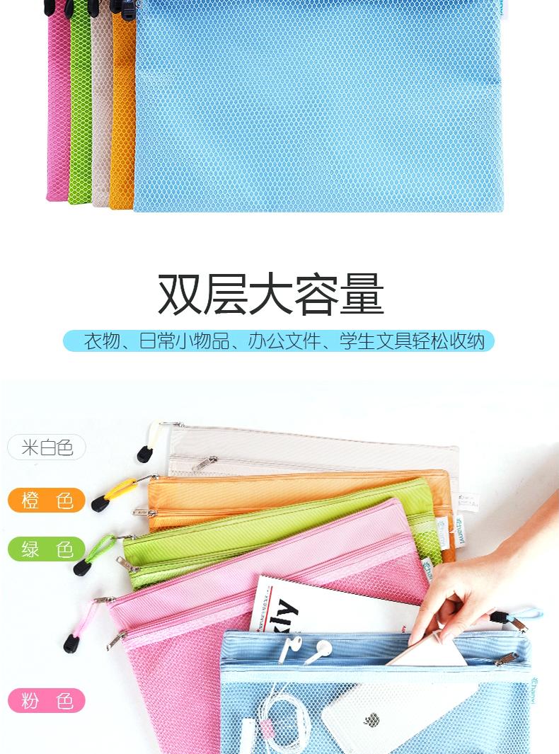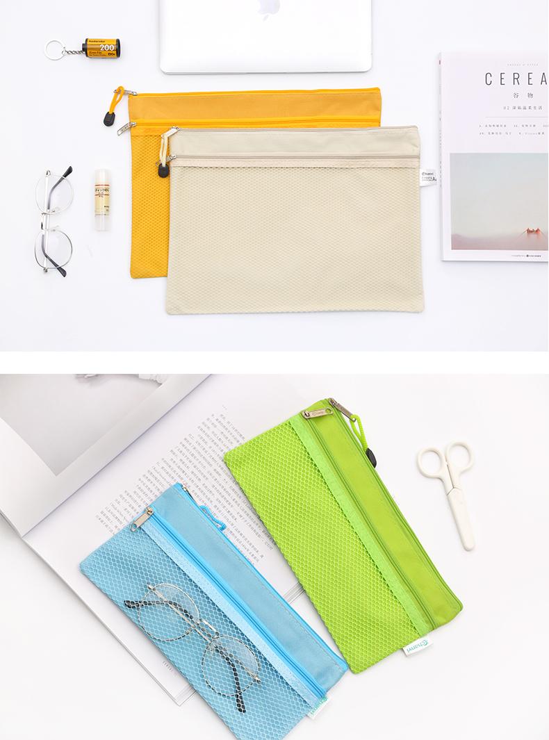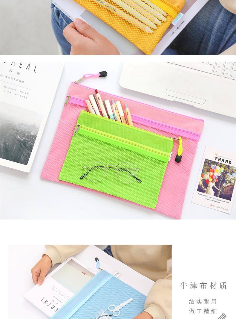 Bolsa para Documentos de Doble Capa Lona Oxford Bolsa de Información Transparente Suministros de Oficina Estudiante Almacenamiento Multicapa de Hojas de Examen Cierre Cremallera Bolsa para Lápices