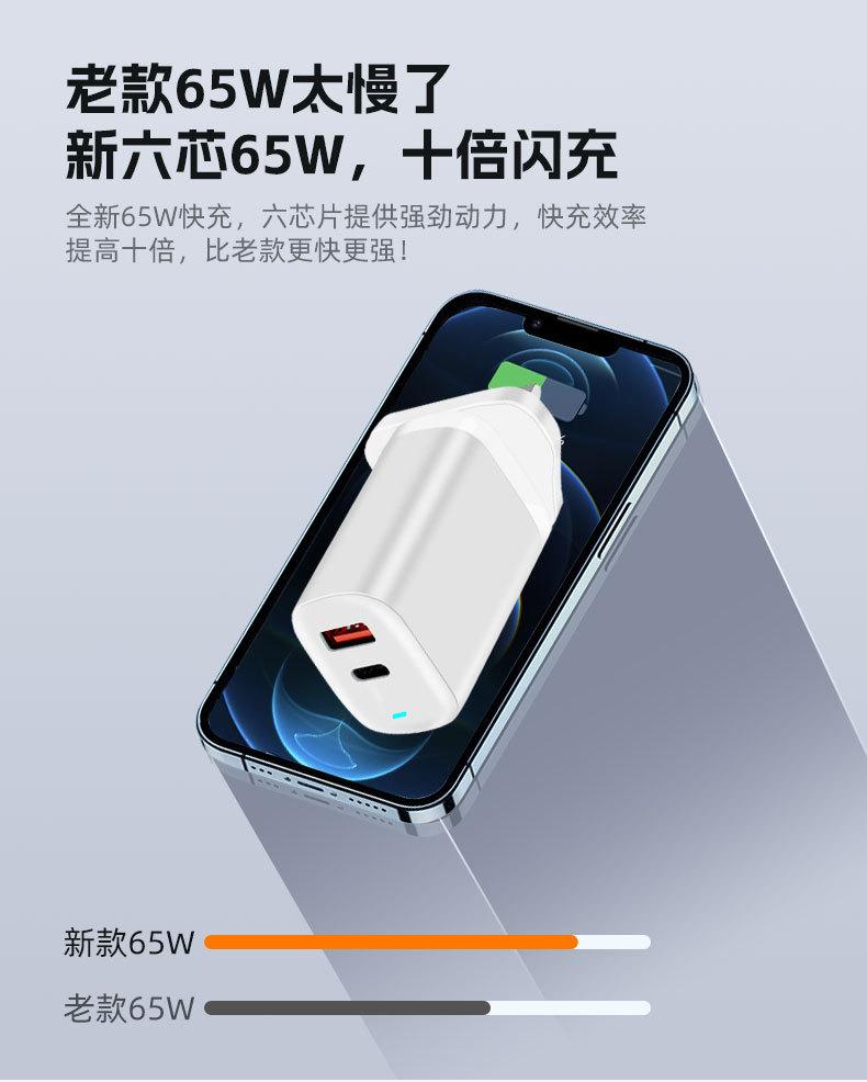 Cargador transfronterizo de nitruro de galio de 65 W estándar británico multipuerto de acuerdo completo aplicable a Samsung Apple 15 certificación de carga rápida de Huawei