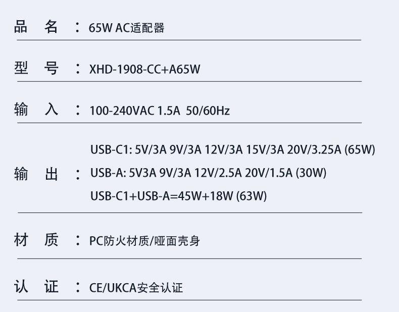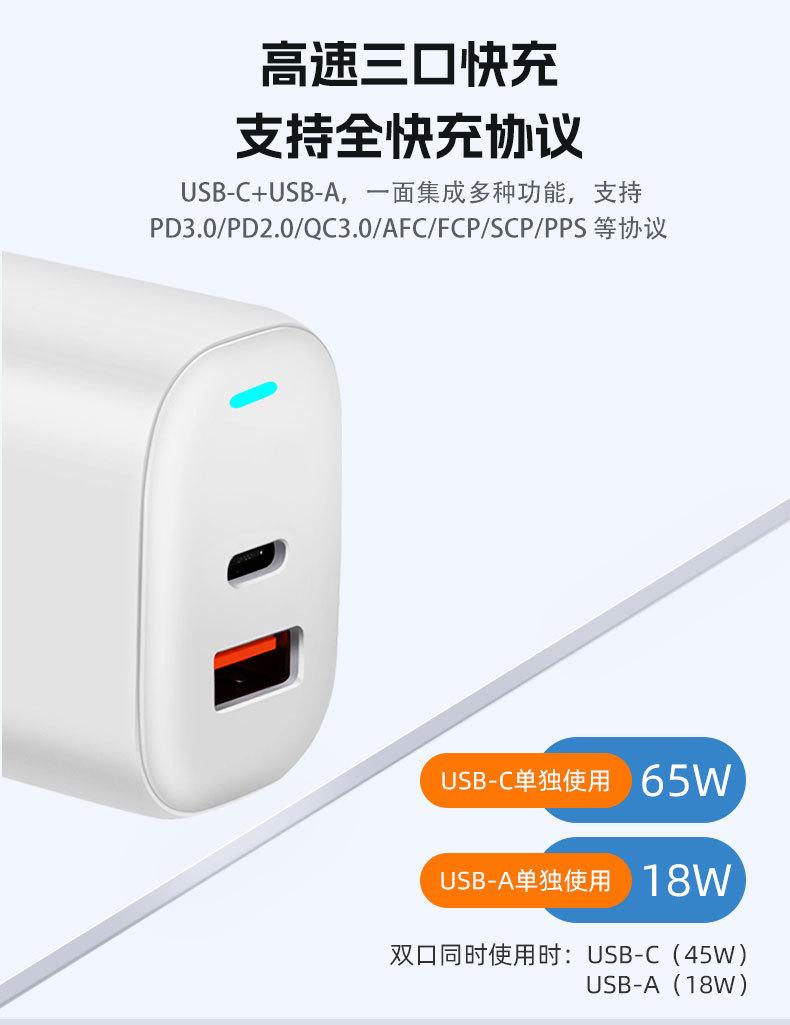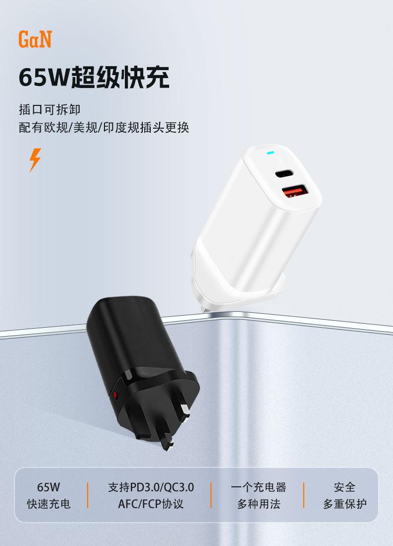 A + C port PD65W British standard plug + American standard plug + European standard plug + Indian standard plu...