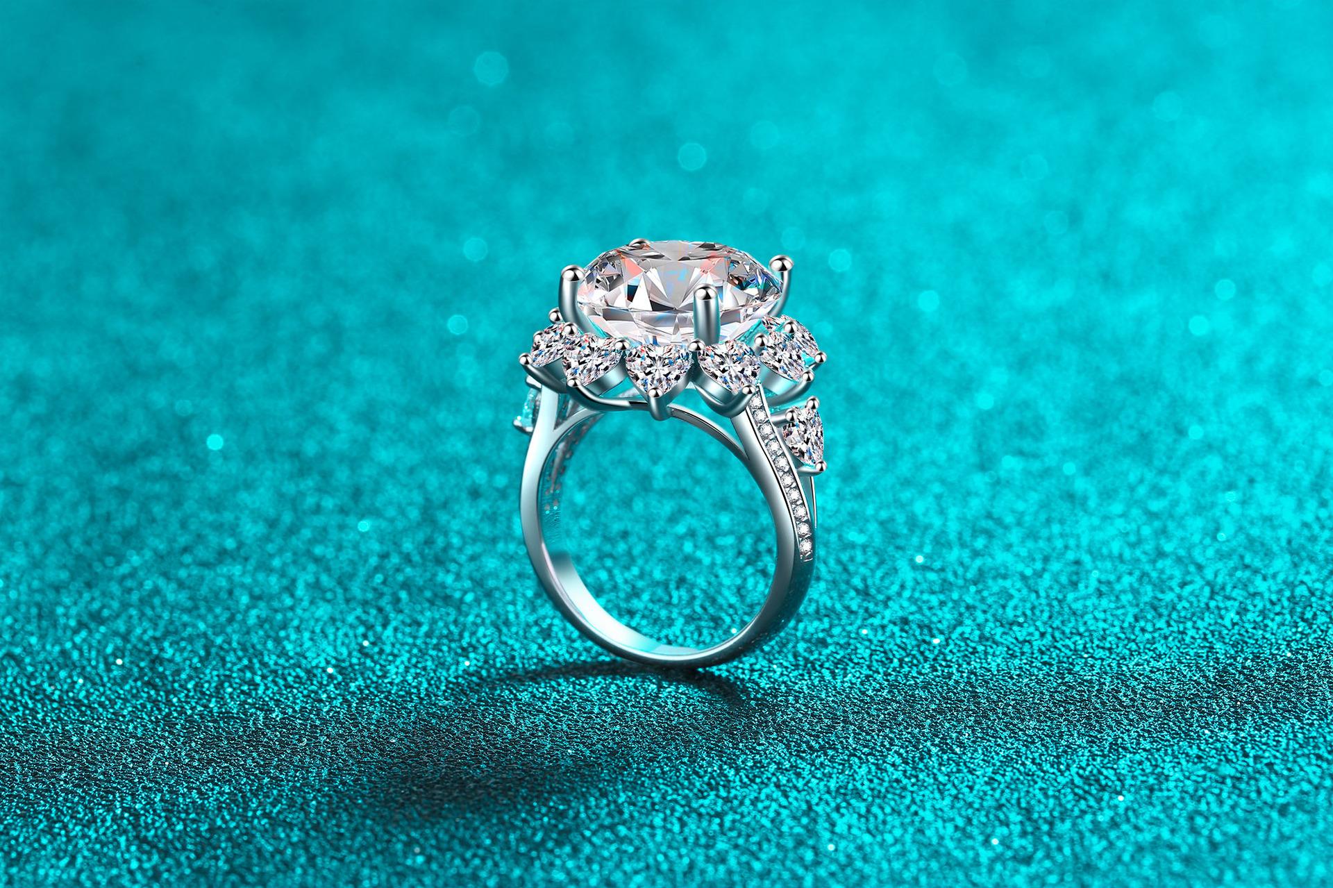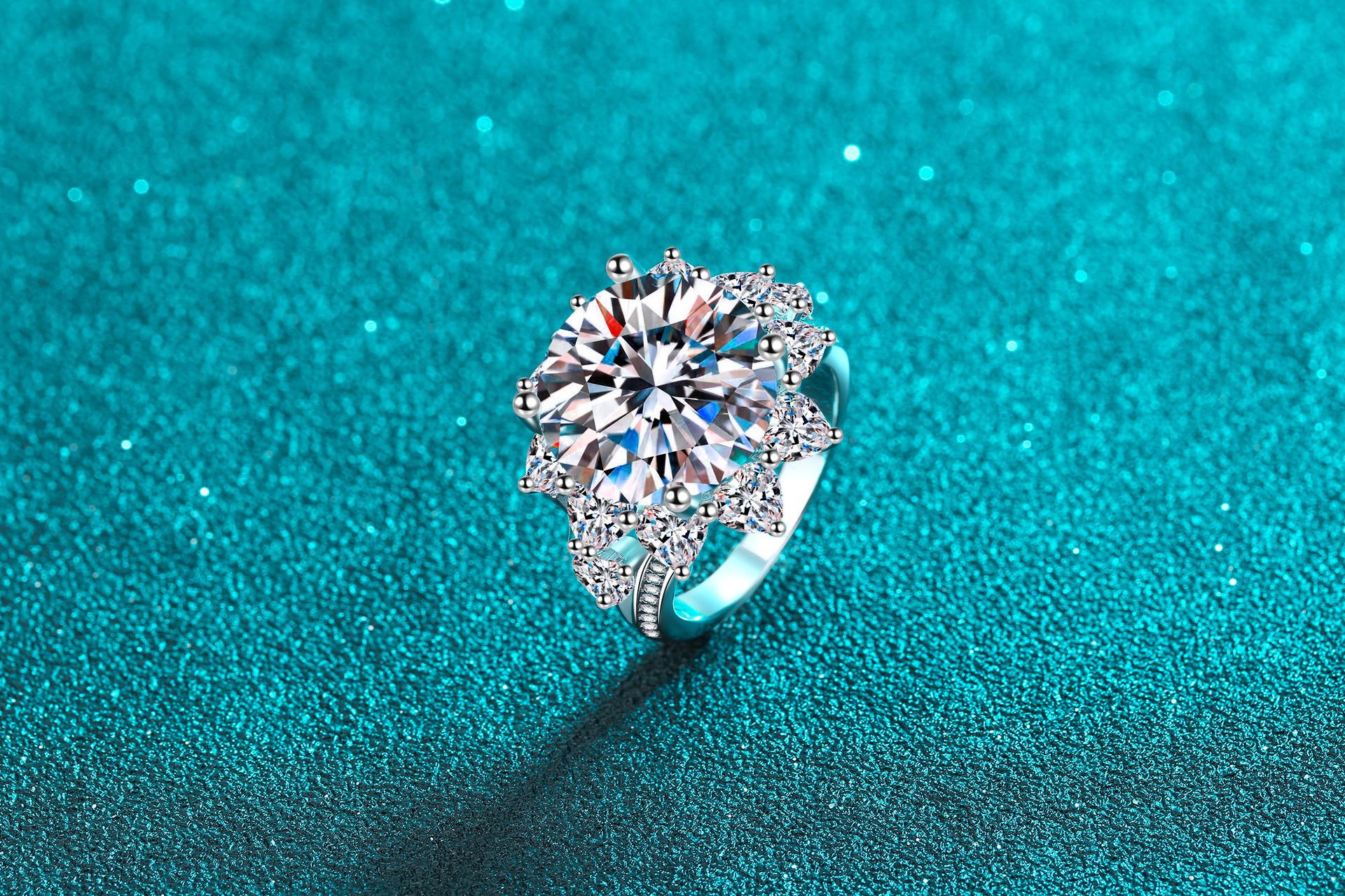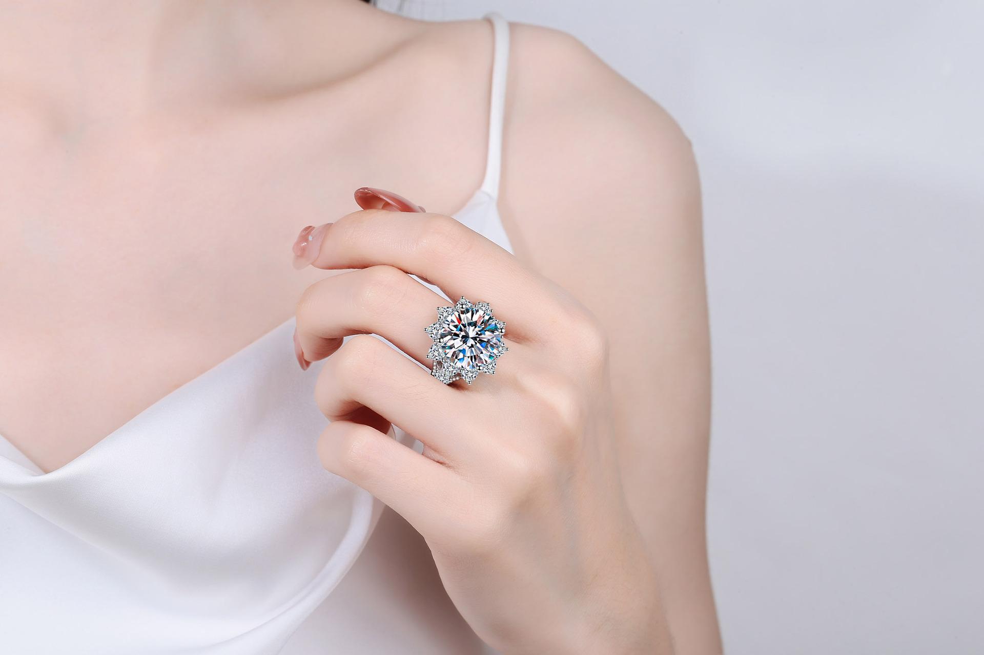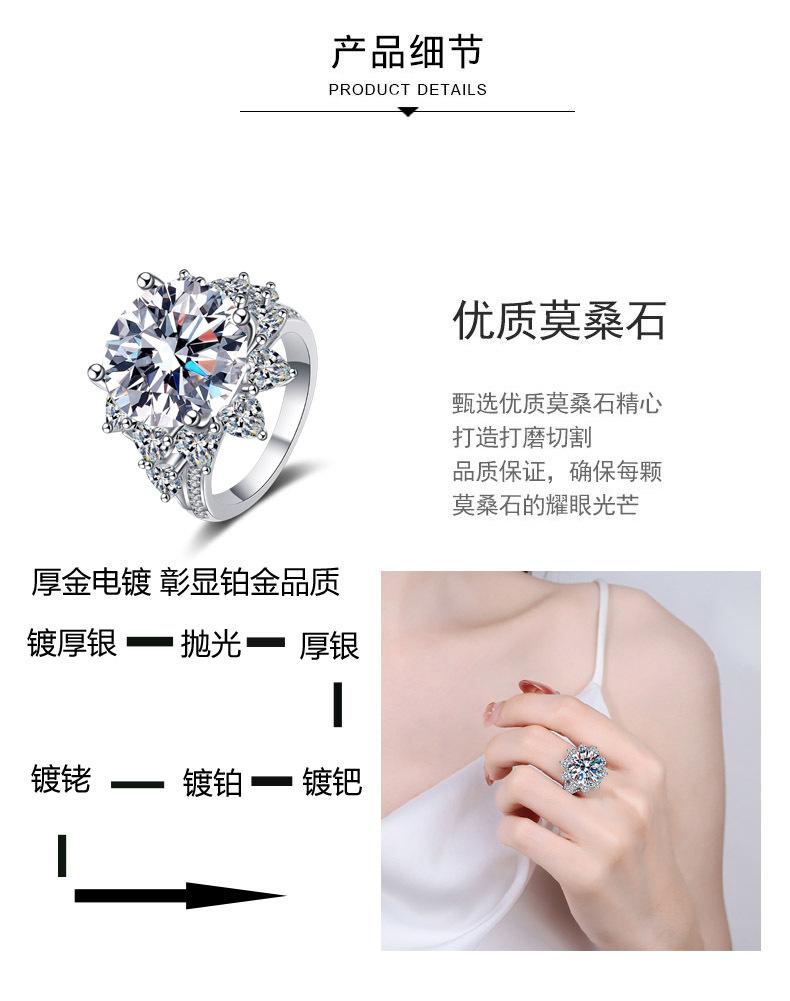 Anillo de plata de ley 925 para mujer, moissanita de lujo de 10 quilates, chapado en oro PT950, mesón, venta al por mayor.