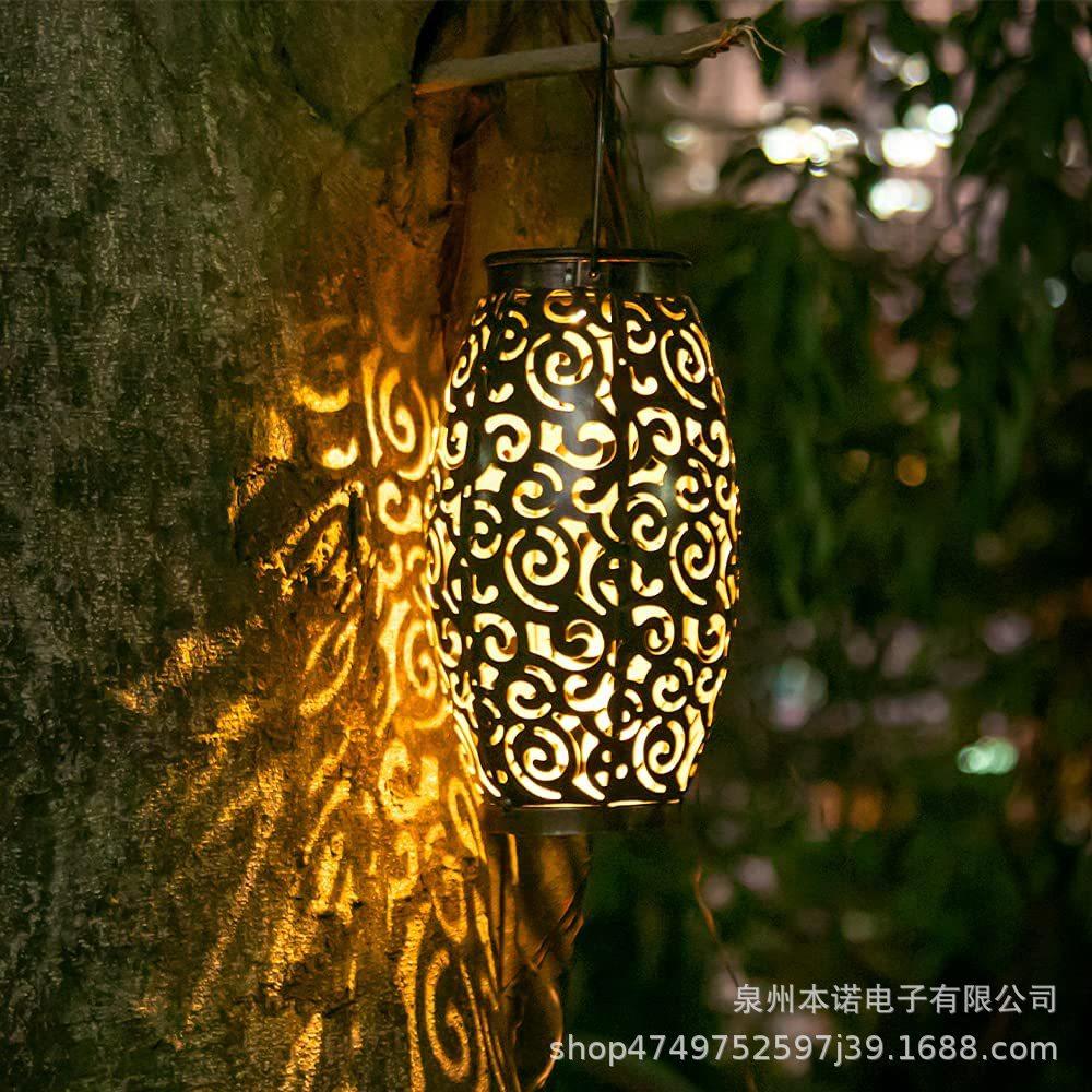 Lámpara solar de hierro para exteriores, lámpara de césped con proyección hueca, lámpara de jardín para villa, lámpara de jardín exterior, lámpara LED para paisaje