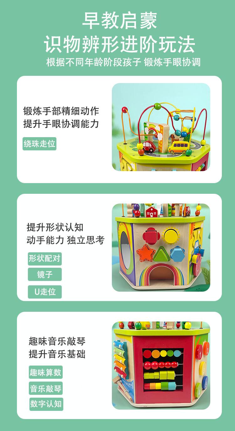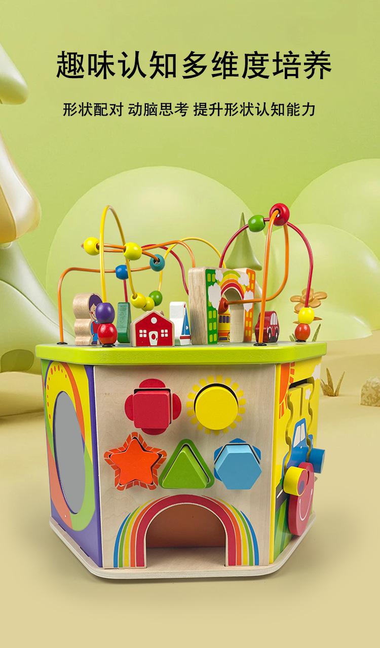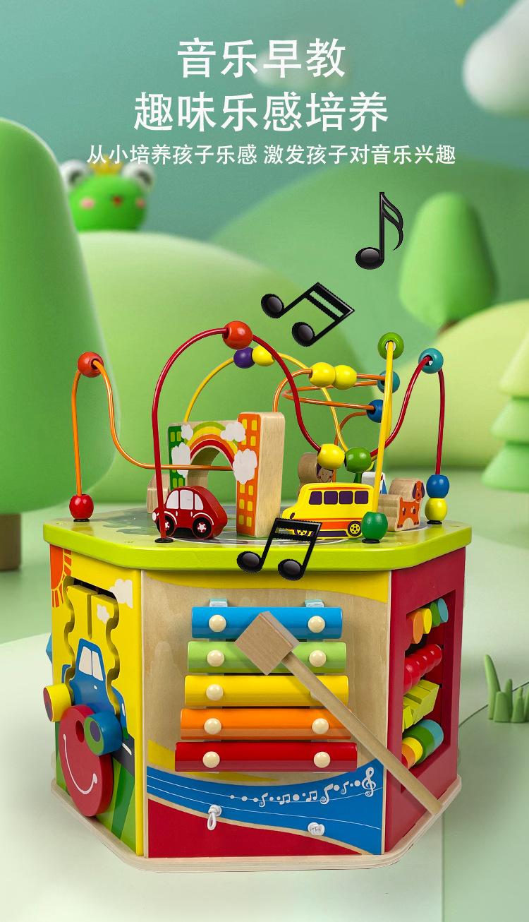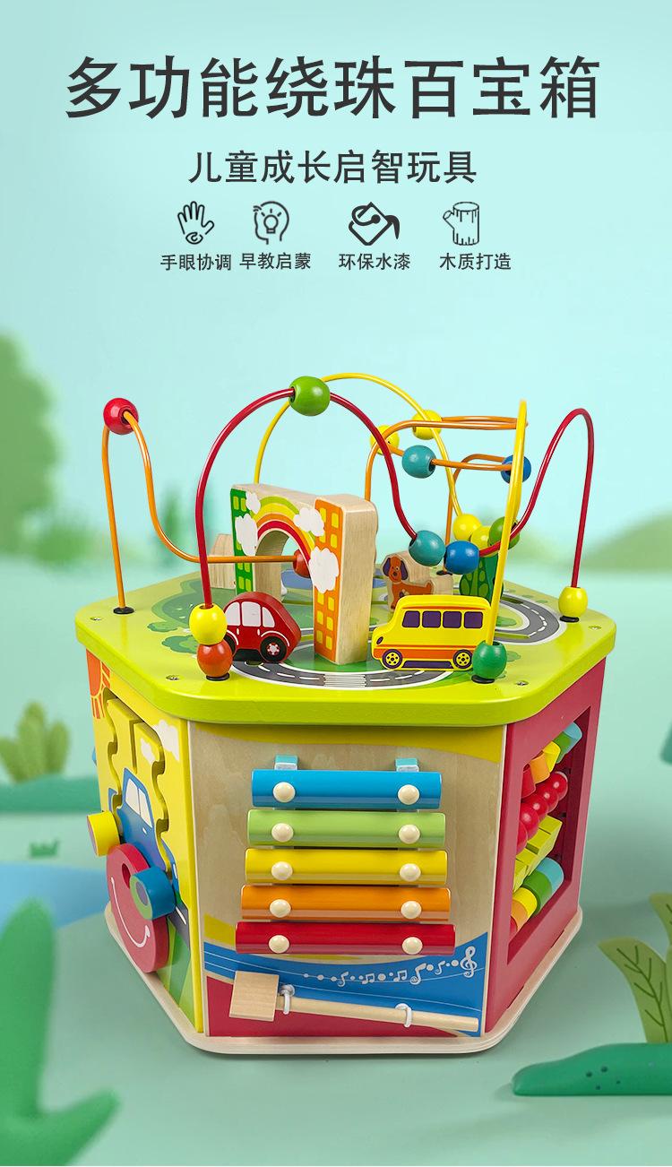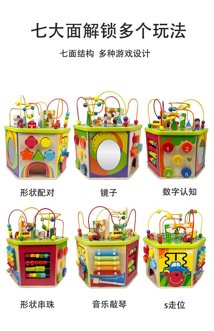 Siete en Uno para Niños con Cuentas Envueltas Grande 1-3 Años Bloques de Construcción Multifuncional Educación Temprana Caja de Tesoro Educativa Juguete de Regalo